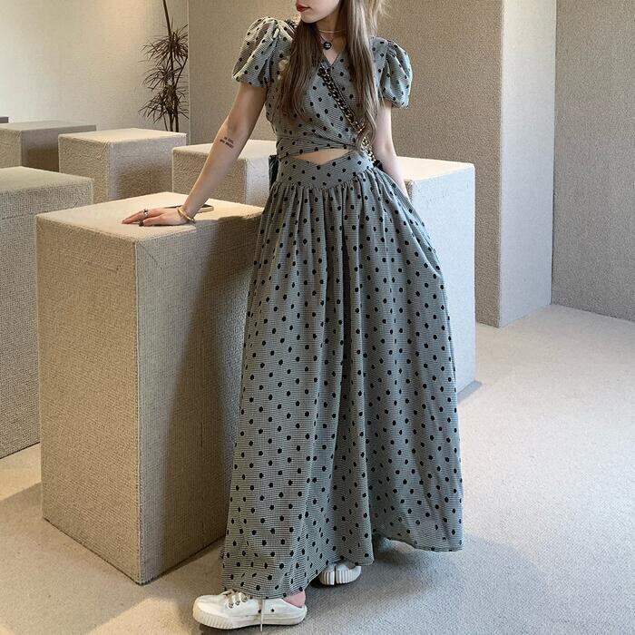 ワンピースライクで着こなせるドット柄セットアップ。