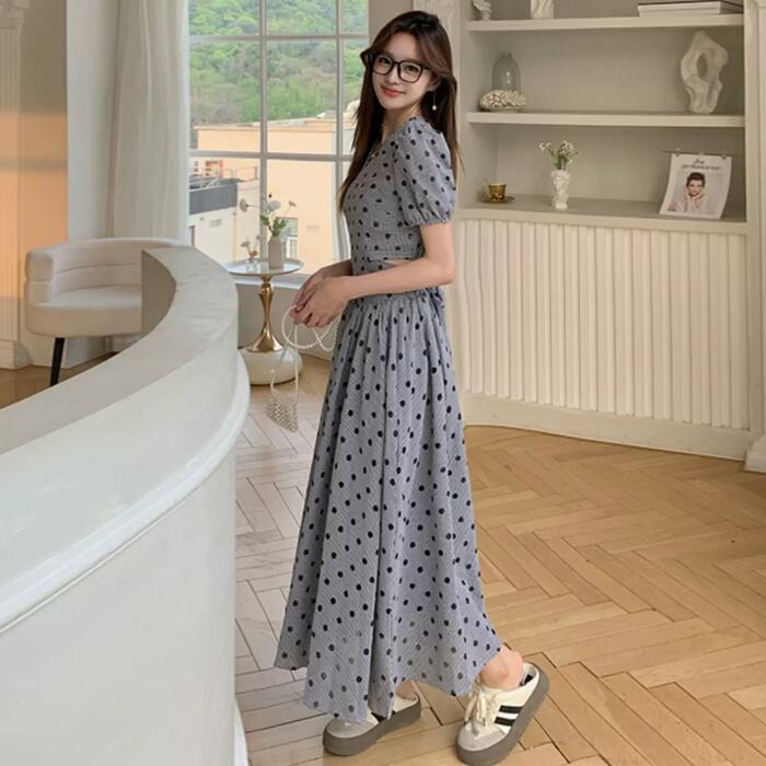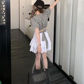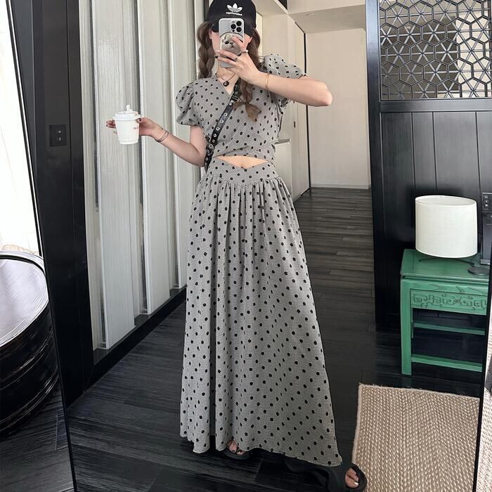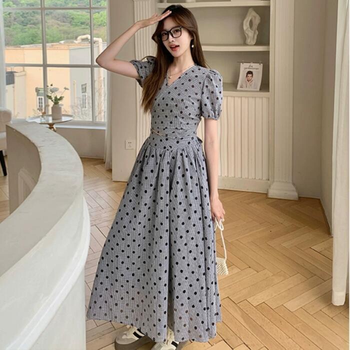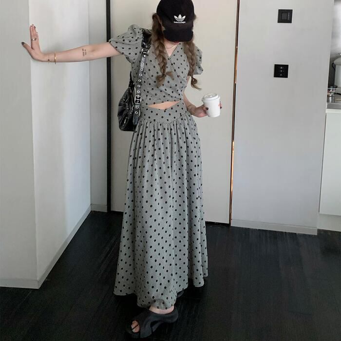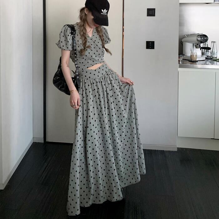 大きいサイズ セットアップ 2点セット トップス スカート ドット チェック レディース ロングスカート エレガント きれいめ カジュアル 大人 可愛い 半袖 クロップド丈 ショート丈 リボン ツーピース グレー 春 秋 夏 20代 30代 40代 50代
