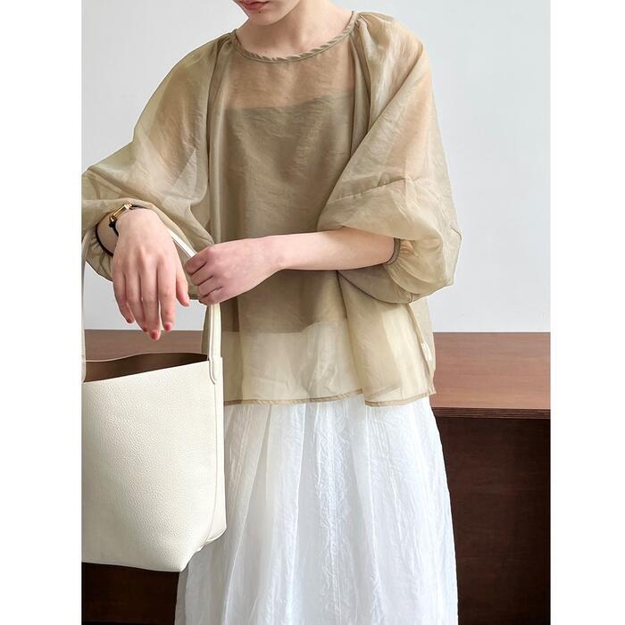 ボリューム感たっぷりのパフスリーブがコーデに華やかさをプラスしてくれます。