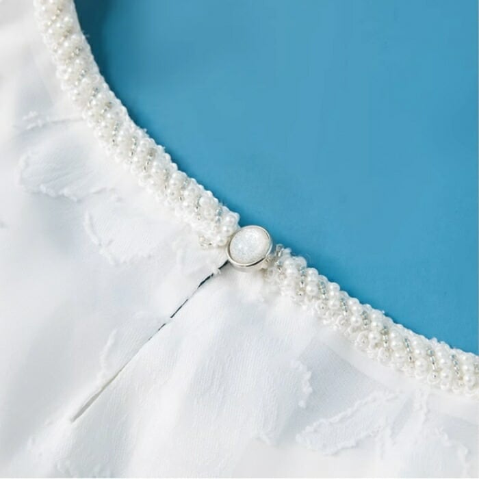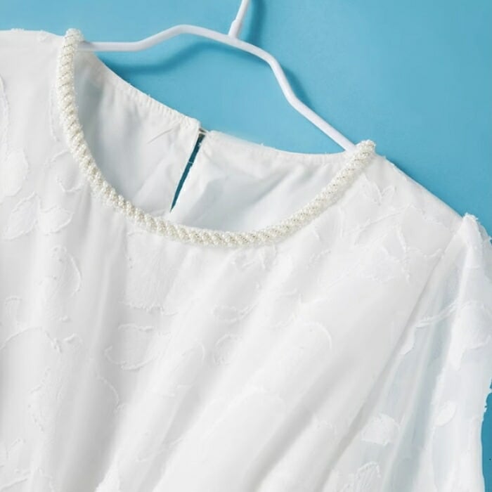 首周りにビーズをあしらい、アクセサリーいらずでサマ見えします。