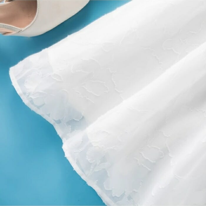 華やかな印象のジャガード生地を使用したワンピース。