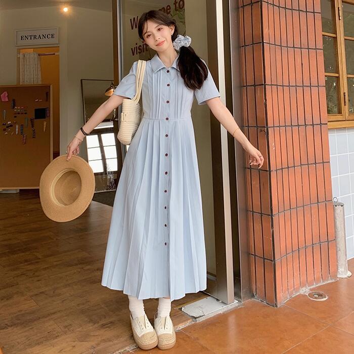 ひらひらと揺れるプリーツデザインが魅力のワンピース。
