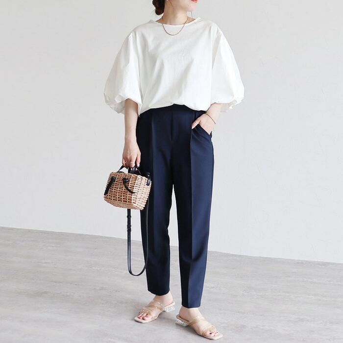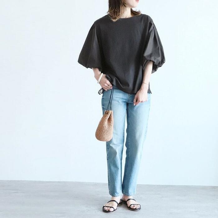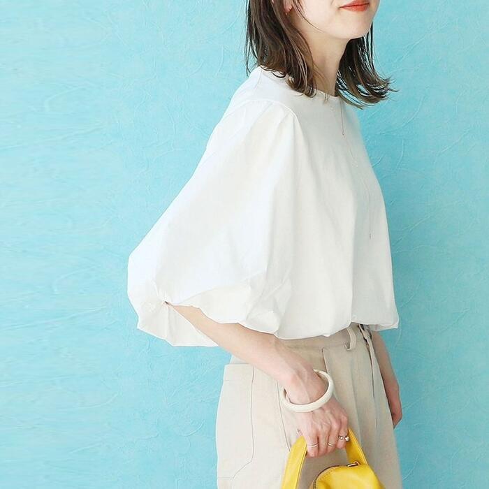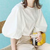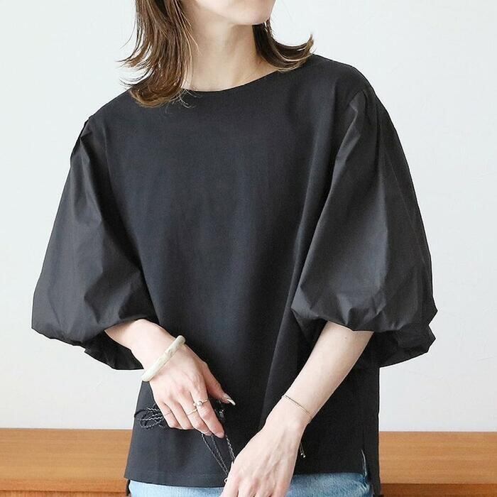 華やかなボリューム袖が目を惹く大人ブラウス。