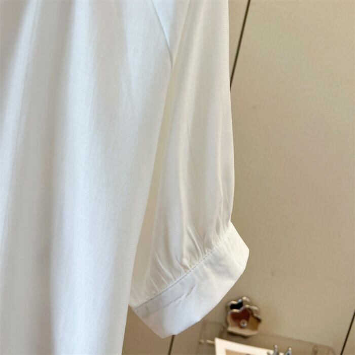 体のラインを拾いすぎないゆとりのあるシルエットが春夏シーズンには嬉しいポイント◎。