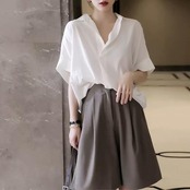 スキッパーネックで抜け感たっぷりの半袖シャツ。