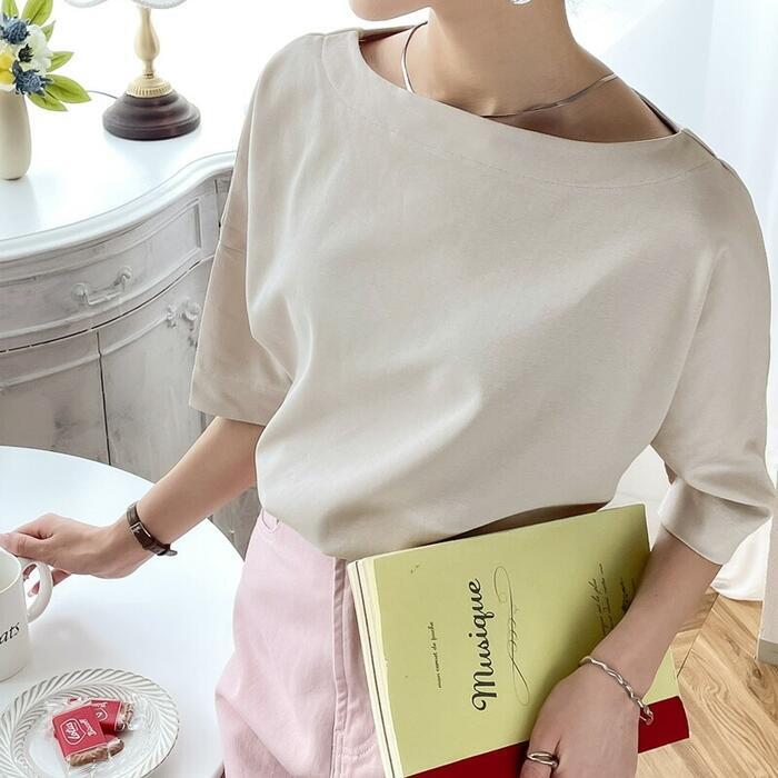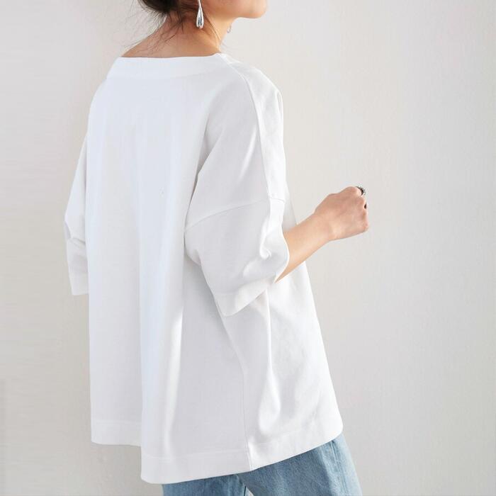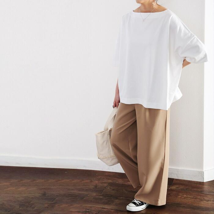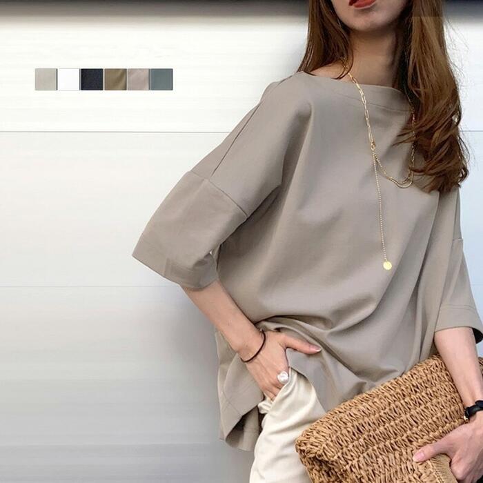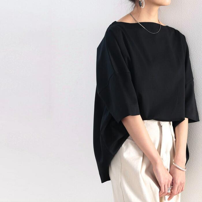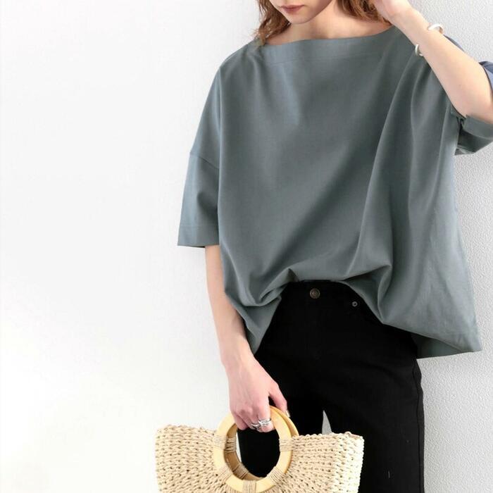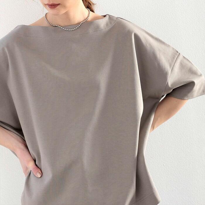 大人カジュアルな着こなしを楽しめるボートネックオーバーサイズTシャツ。
