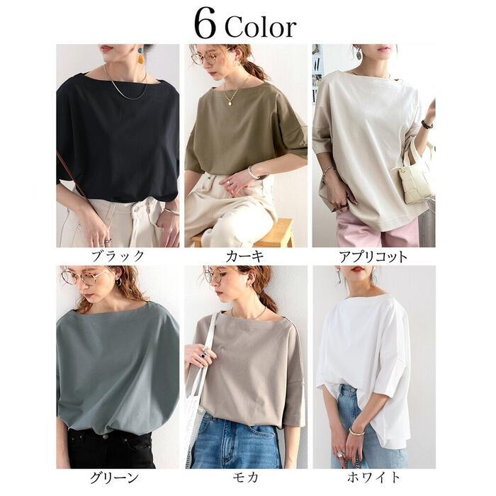 全6色 大きいサイズ トップス シャツ Tシャツ カットソー プルオーバー ボートネック レディース 五分袖 エレガント きれいめ カジュアル フェミニン 大人 可愛い 体型カバー ベージュ グリーン 緑 ホワイト 白 カーキ ブラック 黒 春 秋 夏 20代 30代 40代 50代