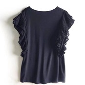 プリーツの入ったフリルスリーブがポイントのブラウス。