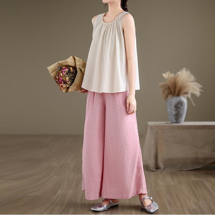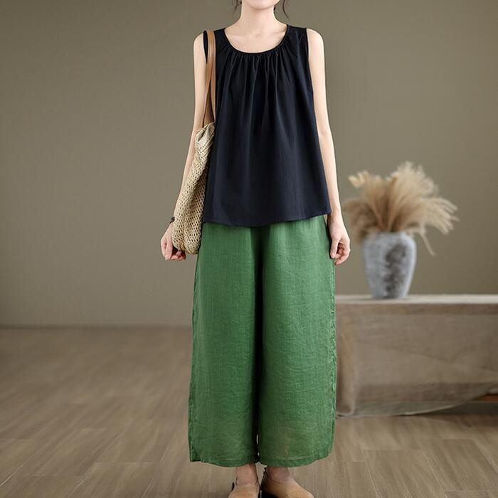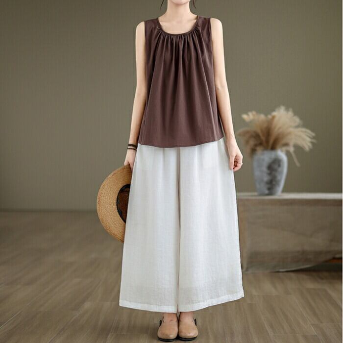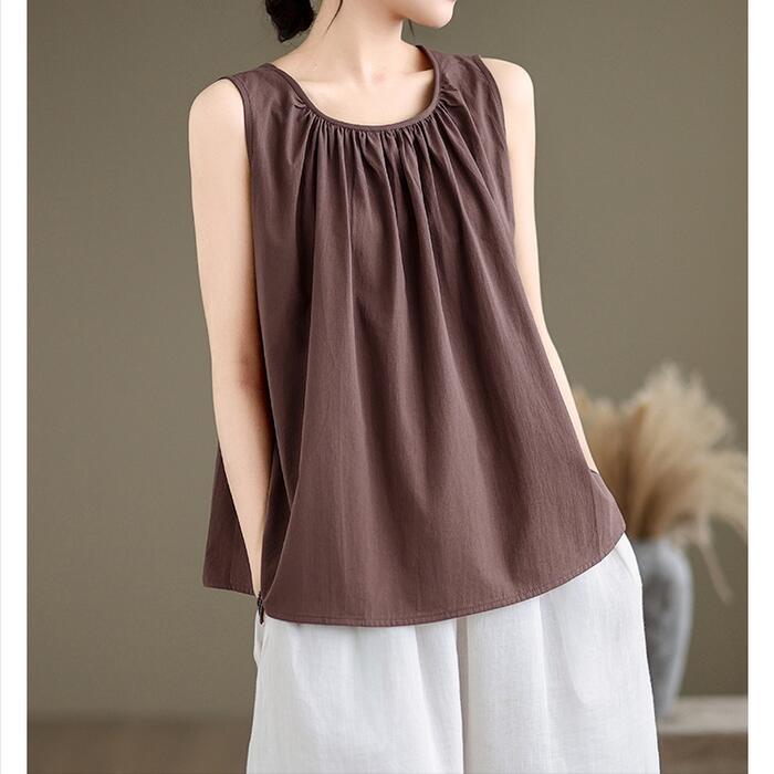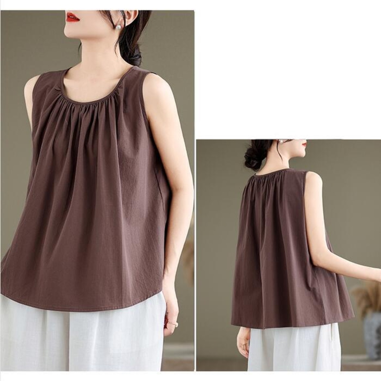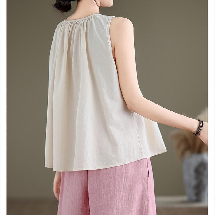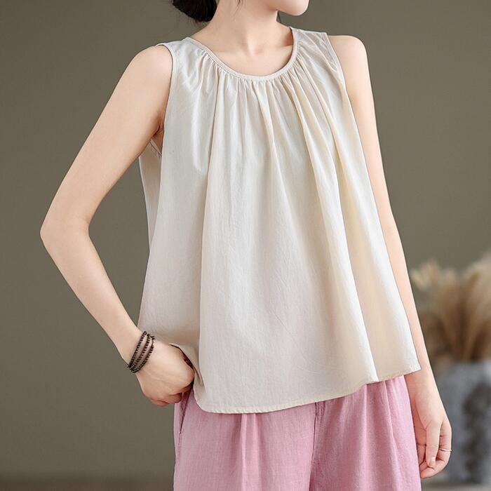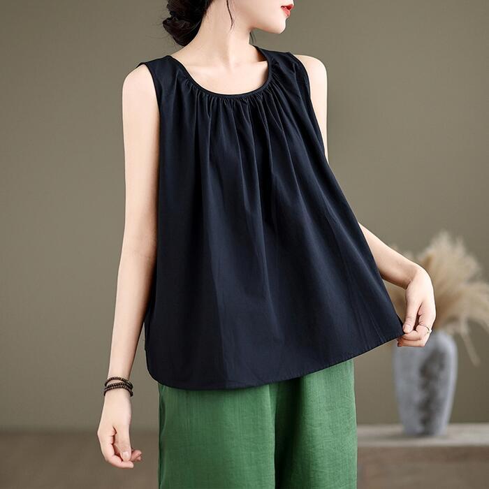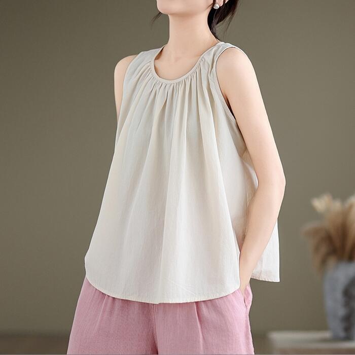 Aラインシルエットのノースリーブトップス。
