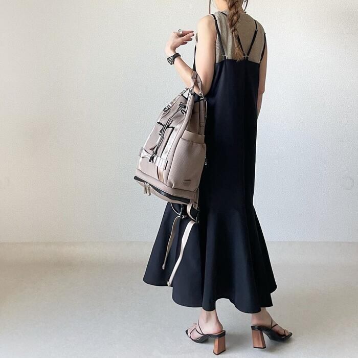 細いストラップで華奢見えに◎