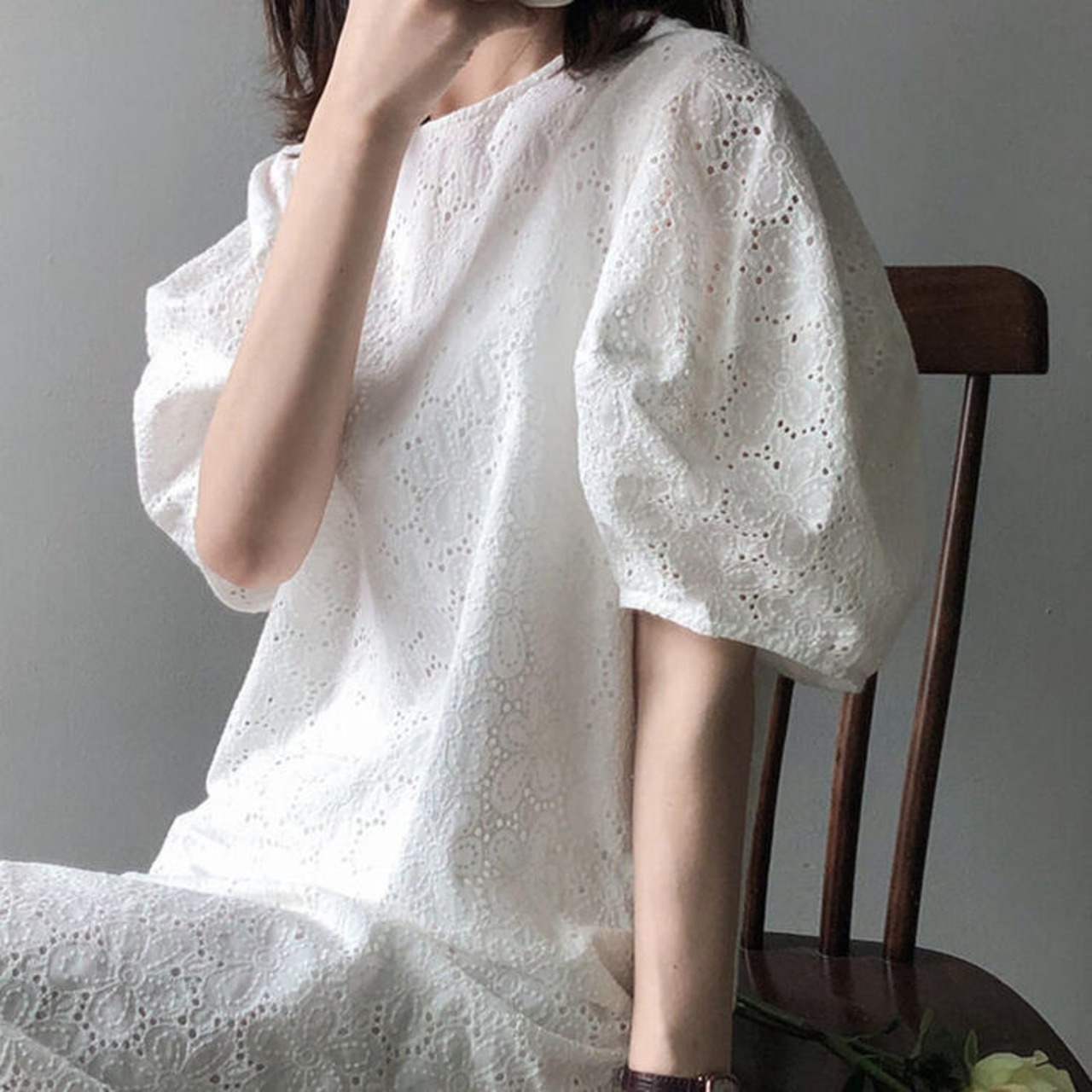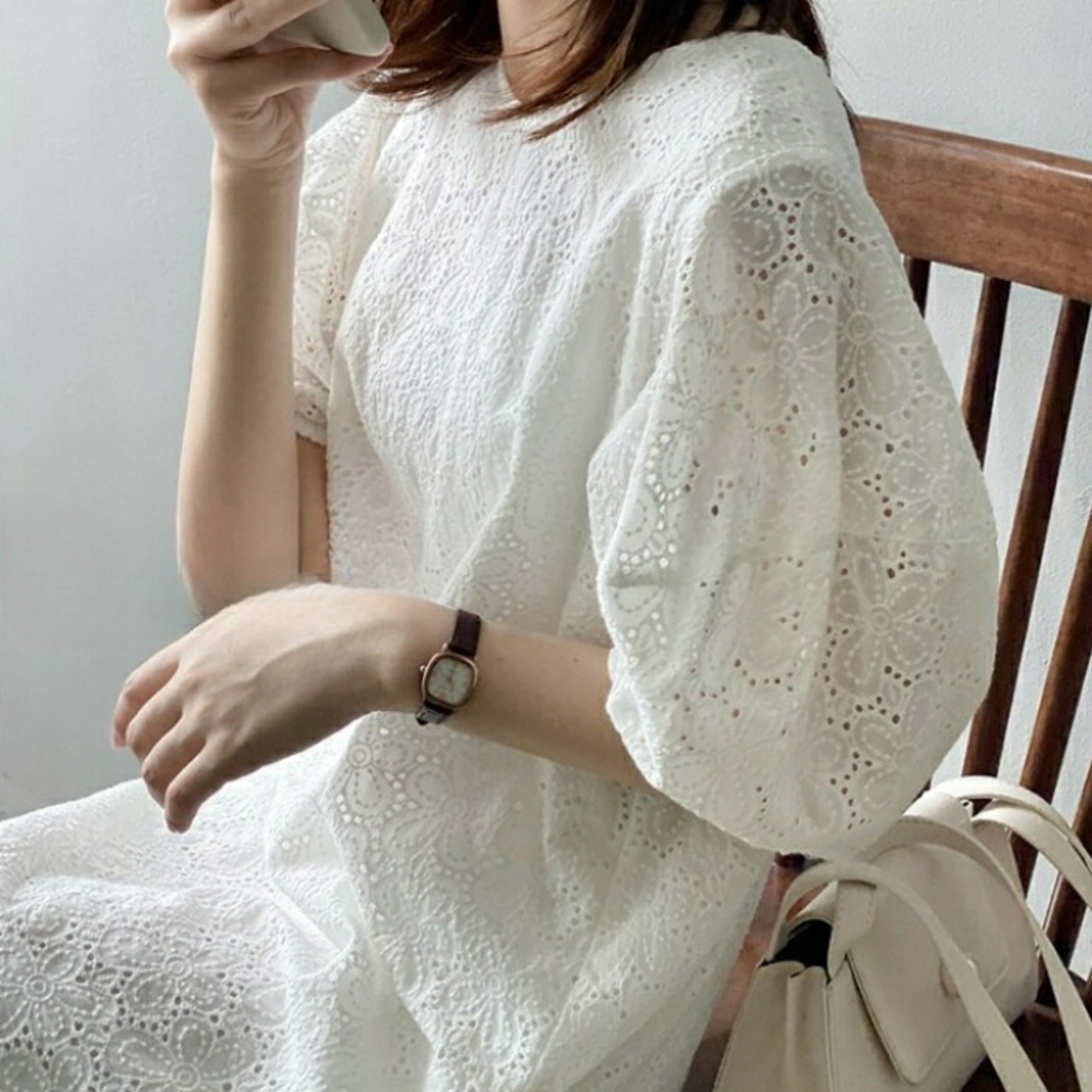 カットワークレースが大人かわいいワンピース。