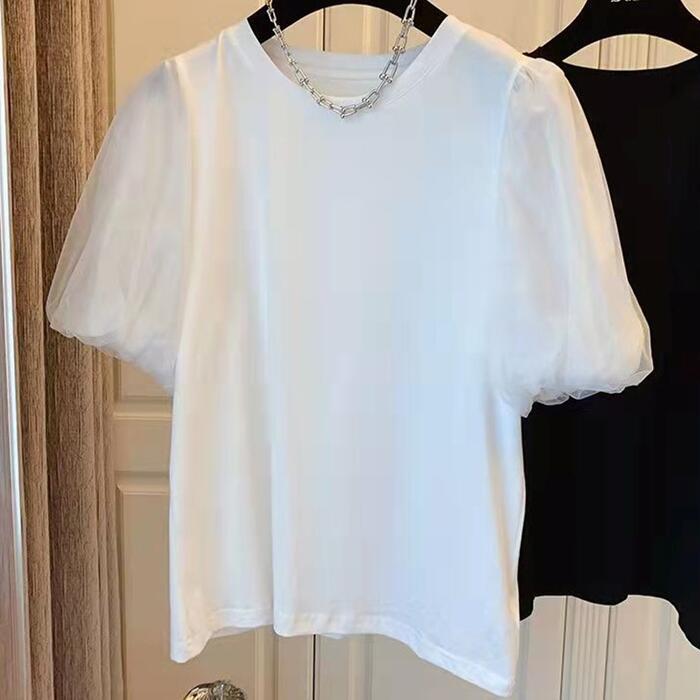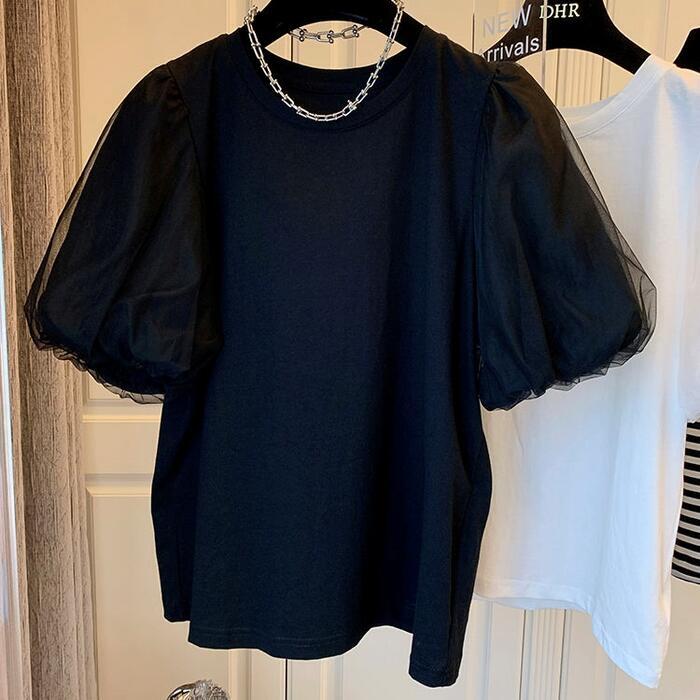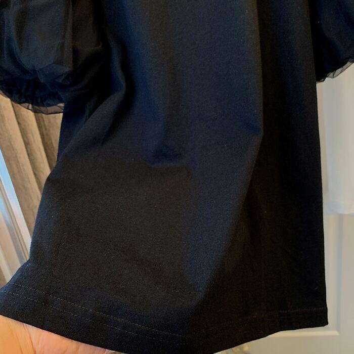 チュール袖がコーデに華やかさをプラスする半袖Tシャツ。
