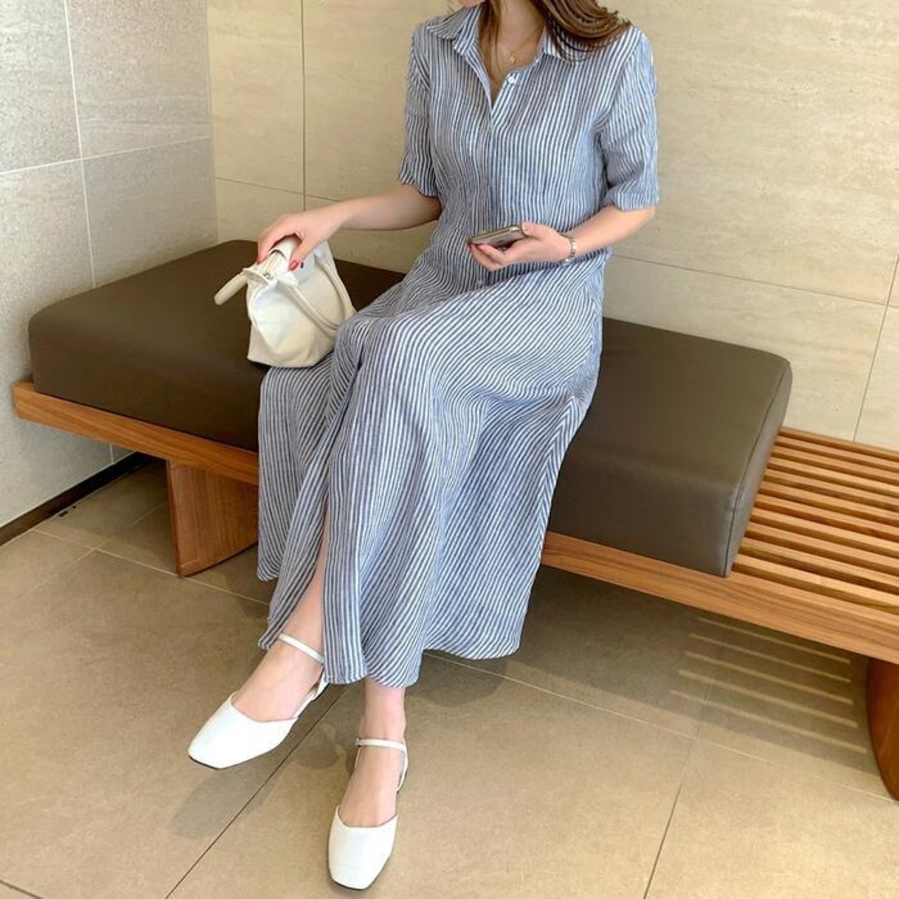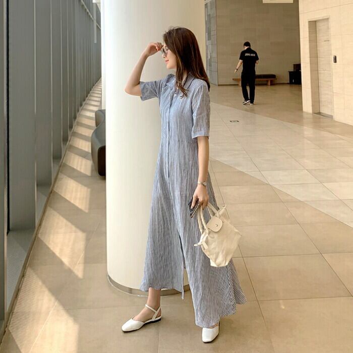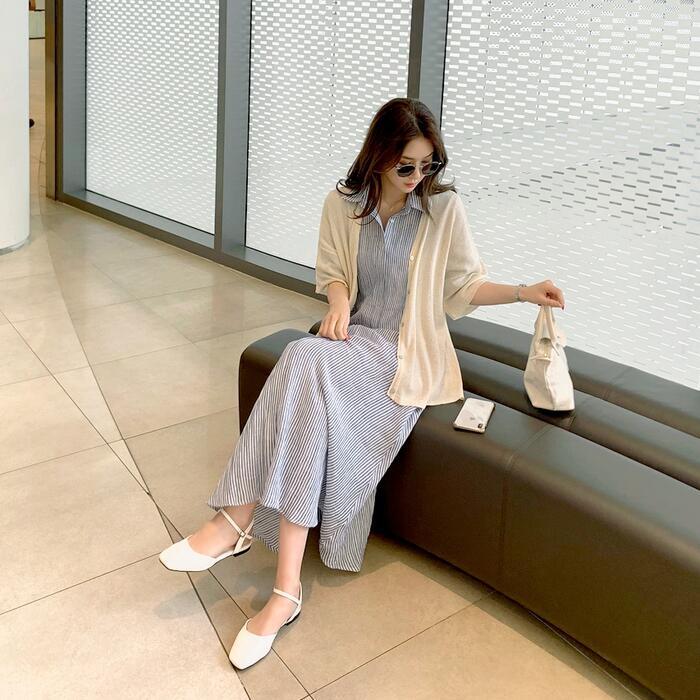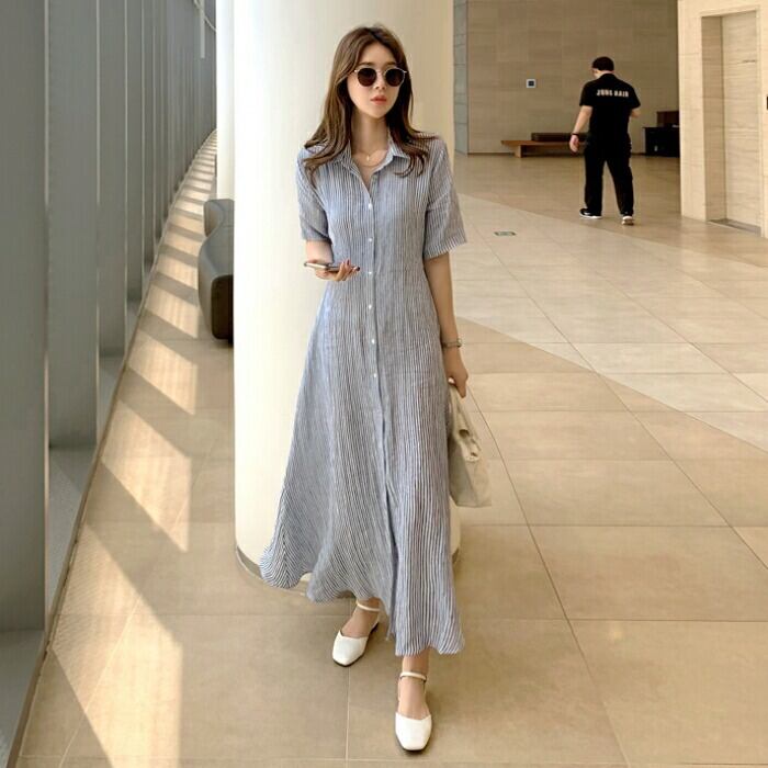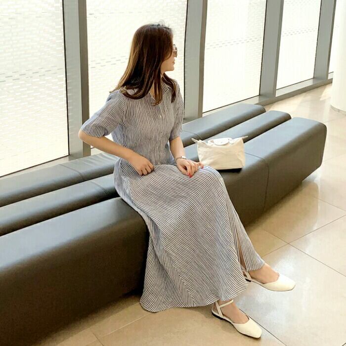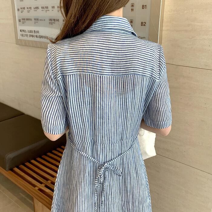 爽やかなストライプ柄のシャツワンピース。