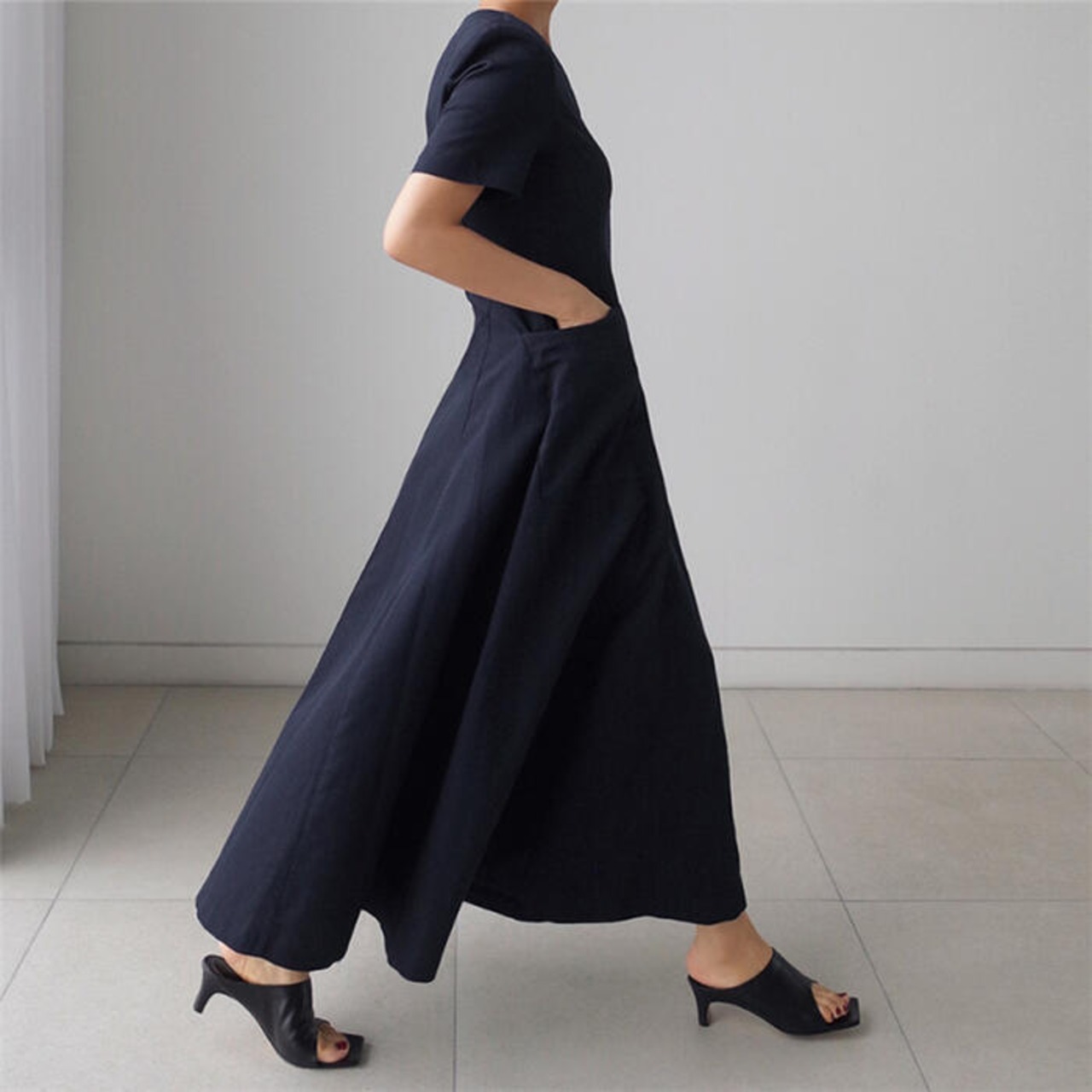 裾に向かってたっぷりと布地が使われたAラインで、足さばきを美しく見せてくれる効果も◎
