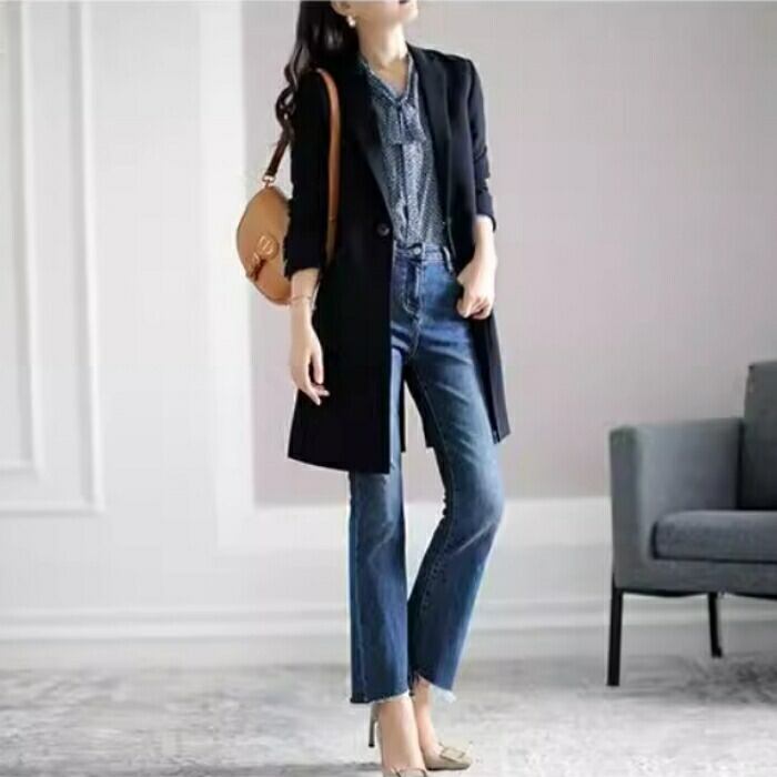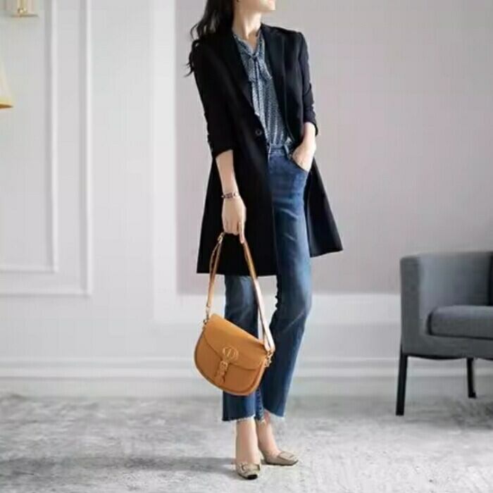 ボトムスはシンプルなデザインのもの を選んでバランスの良いコーデに。