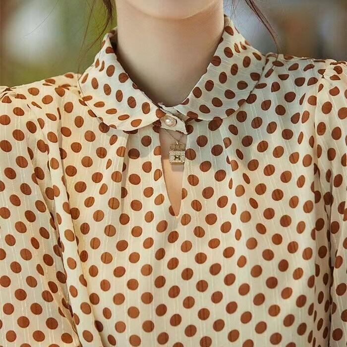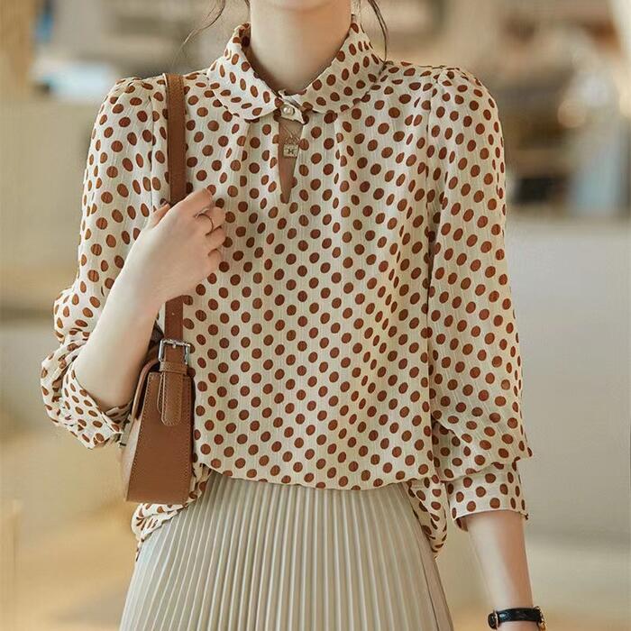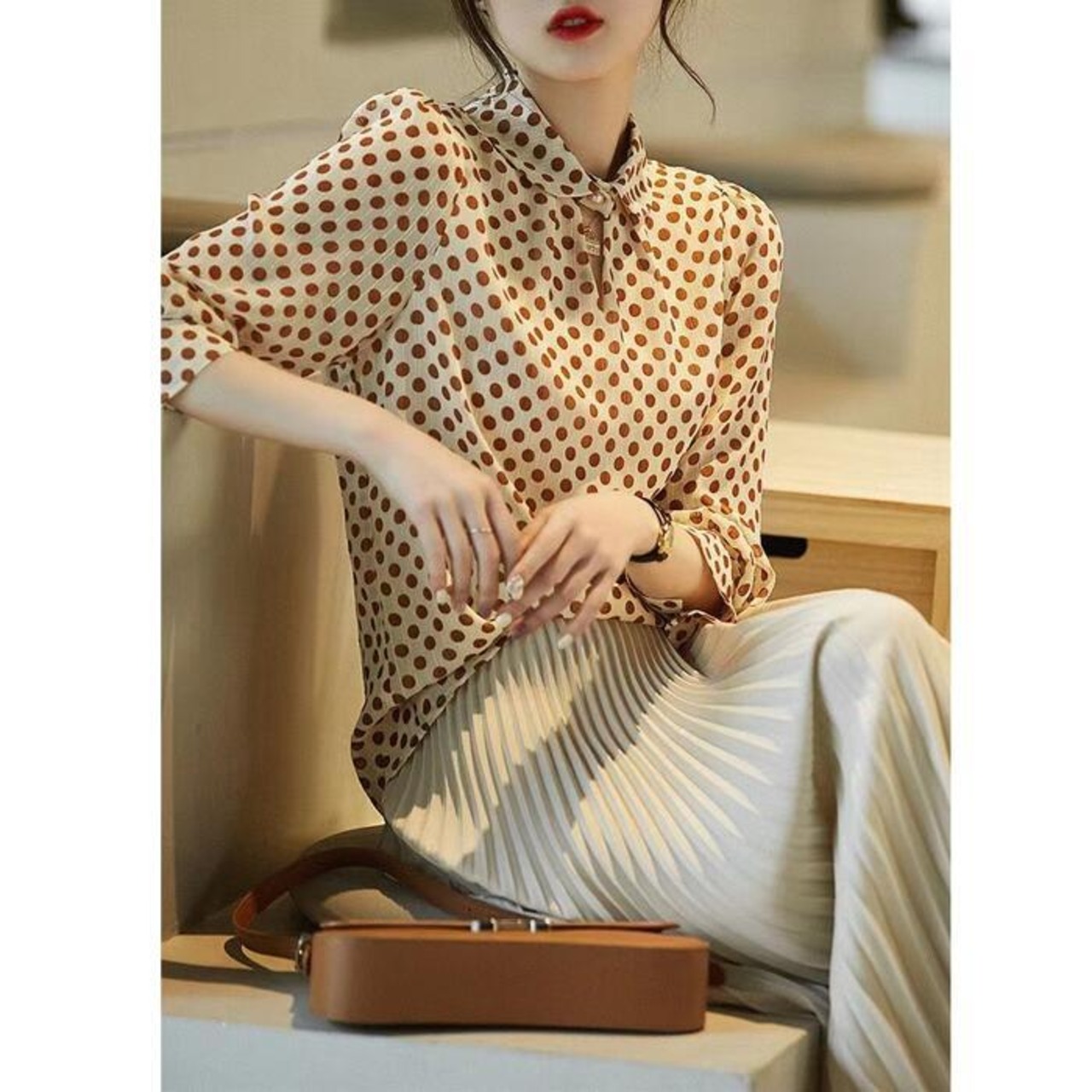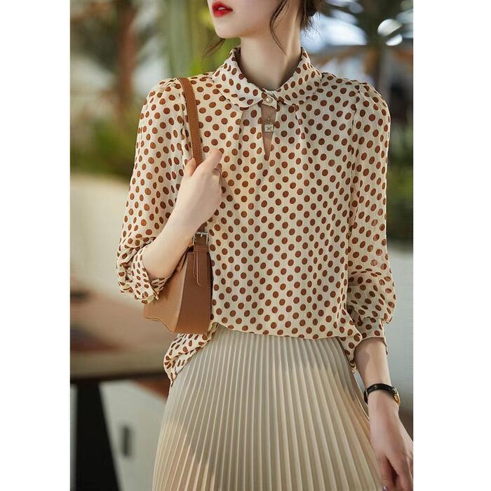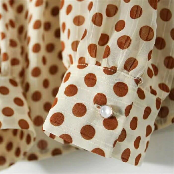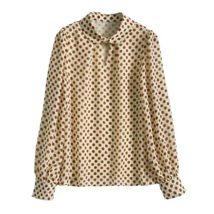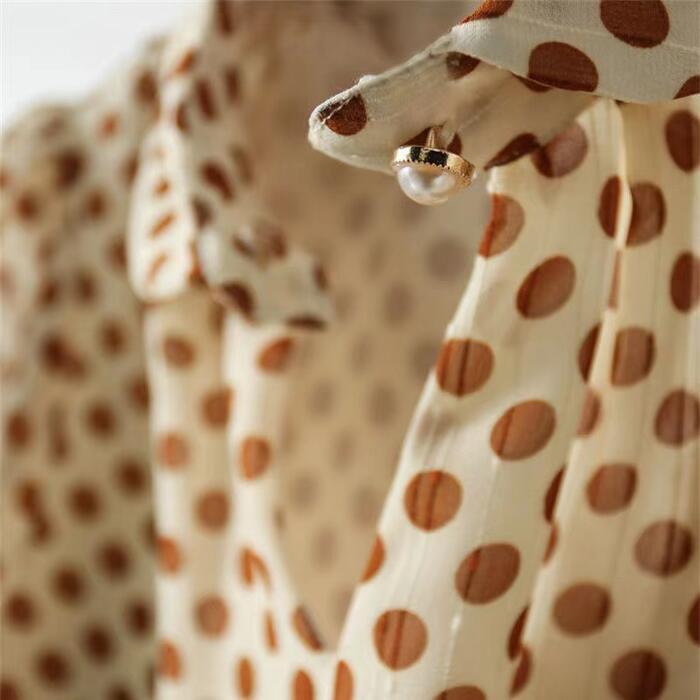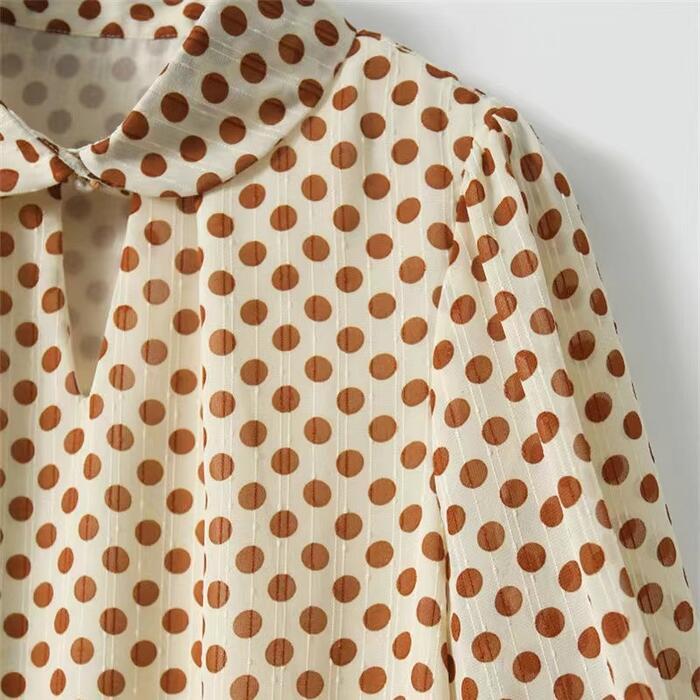ドット柄がクラシカルなムードを漂わせるブラウス。