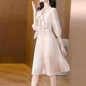 スカート部分はプリーツで広がりを抑えた上品シルエット。