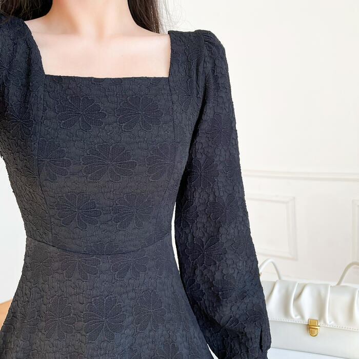 凹凸感のある花柄生地が表情豊かなワンピース。