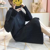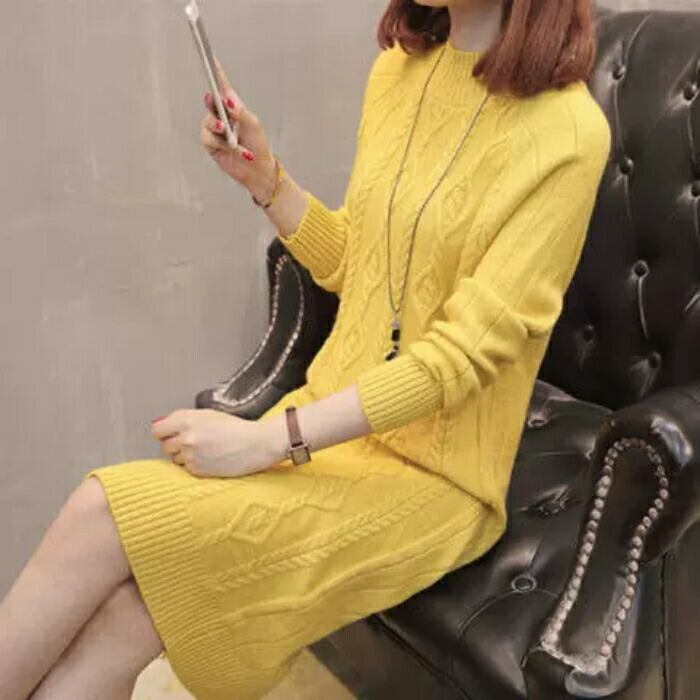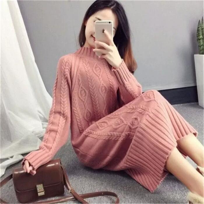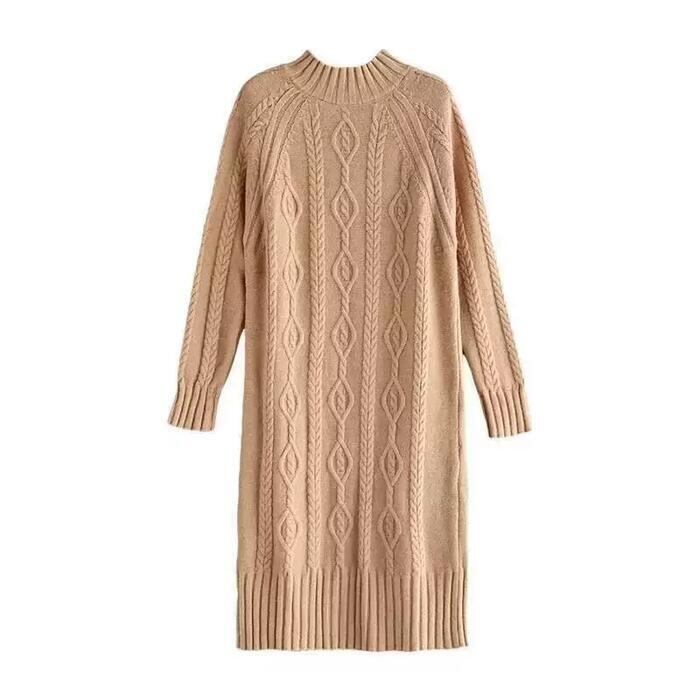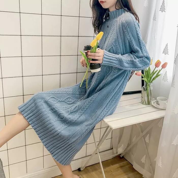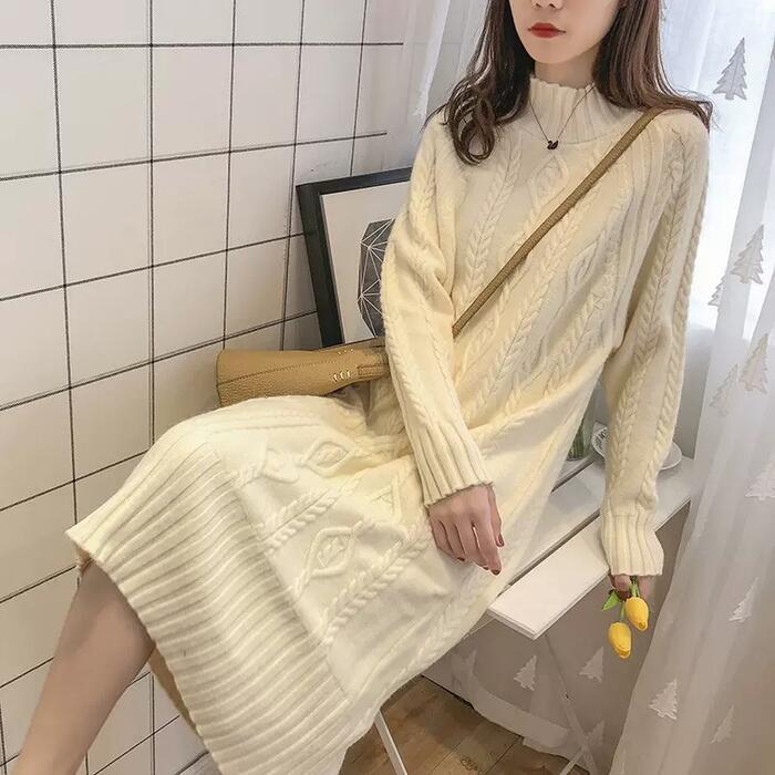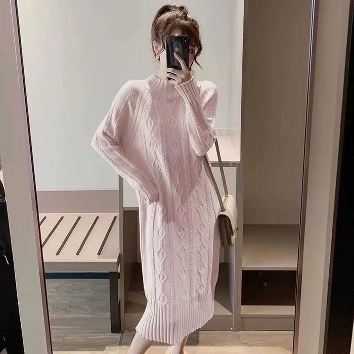 全7色 大きいサイズ 体型カバー ゆったり シンプル 可愛い ワンピース ニット ワンピ ドレス 袖あり タートルネック ハイネック ケーブル レディース エレガント きれいめ カジュアル 長袖 大人 フェミニン ミモレ丈 ベージュ ピンク ブルー 青 イエロー ブラウン ブラック 黒 春 秋 冬 20代 30代 40代 50代
