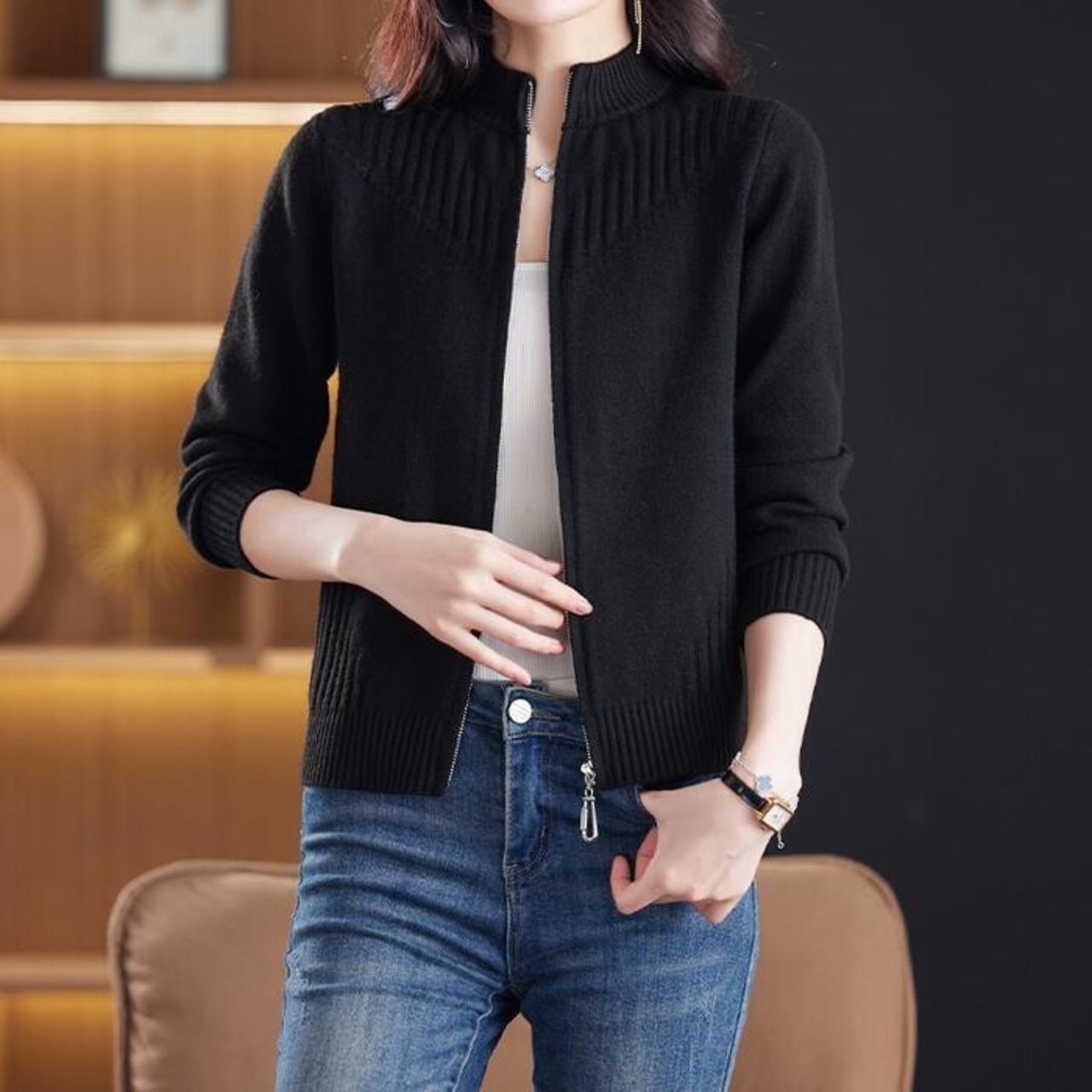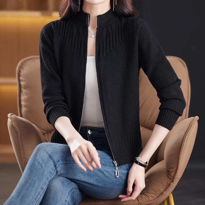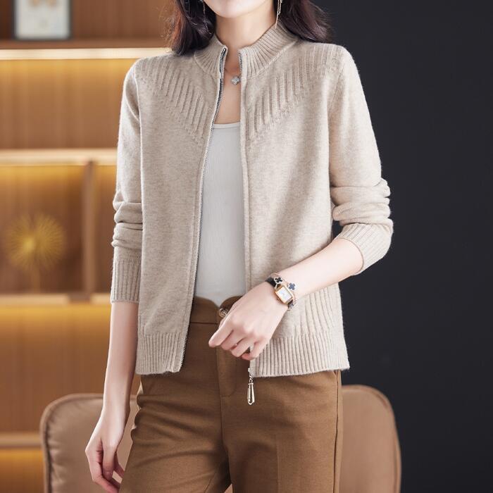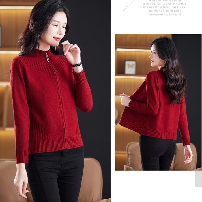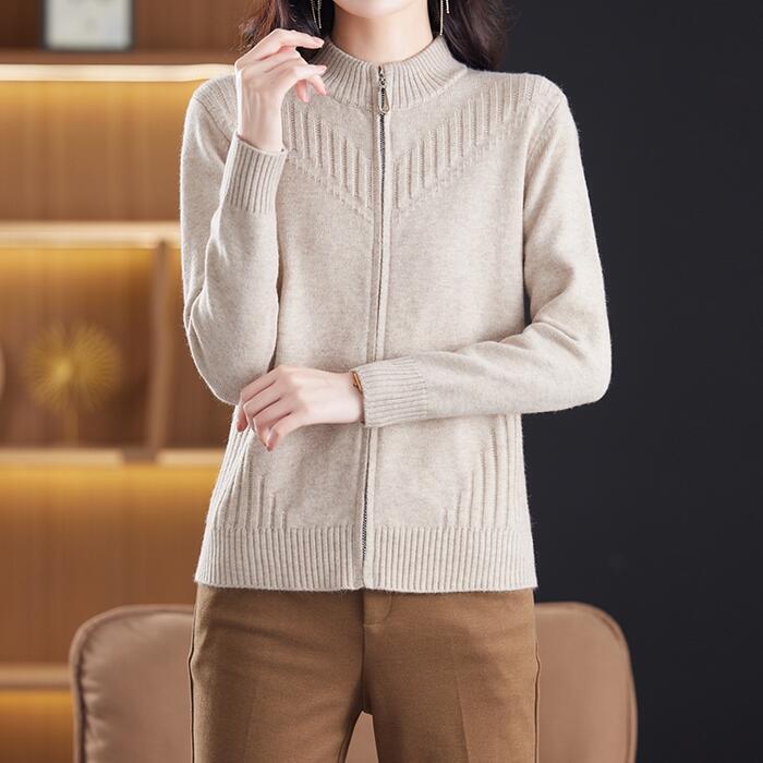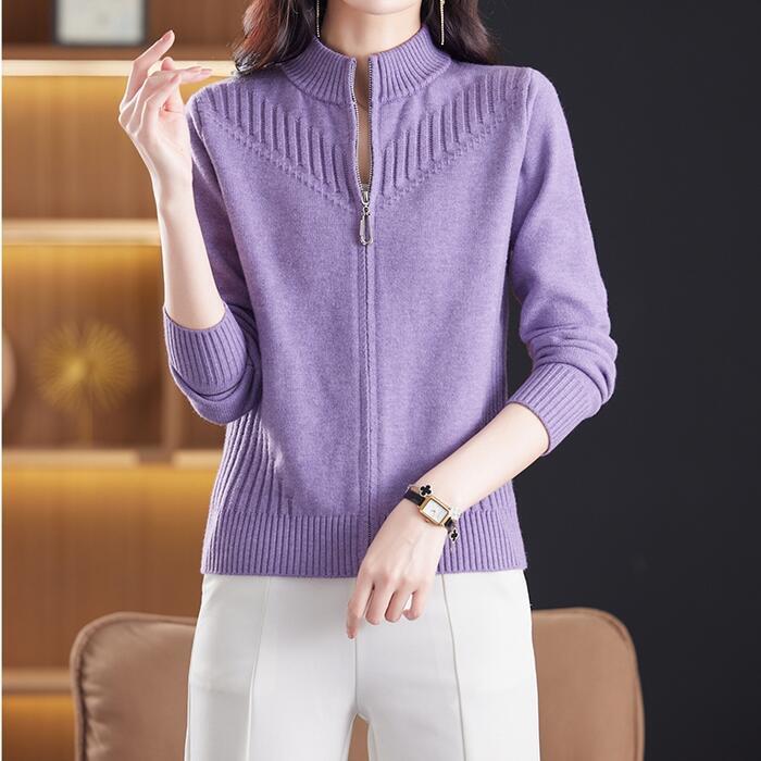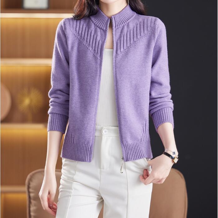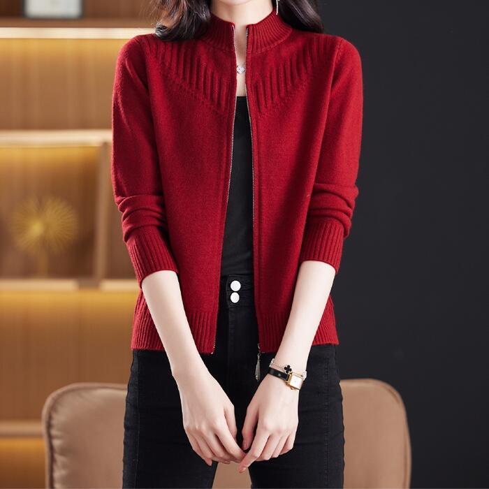 全5色 大きいサイズ シンプル ウール トップス ニット カーディガン セーター 羽織り ジャケット ジップアップ レディース エレガント 大人 可愛い きれいめ カジュアル フェミニン 長袖 カーデ レッド 赤 イエロー パープル ブラック 黒 ベージュ 春 秋 冬 20代 30代 40代 50代