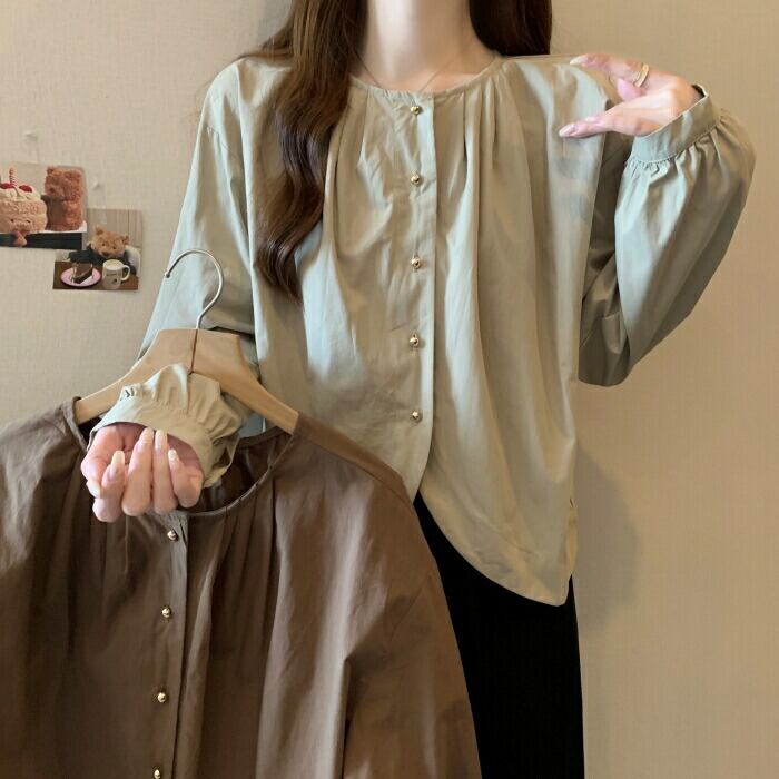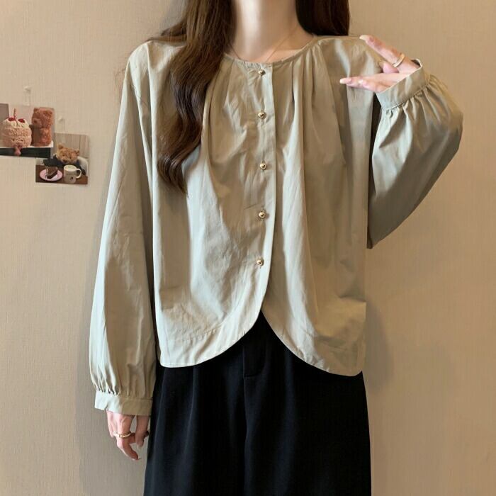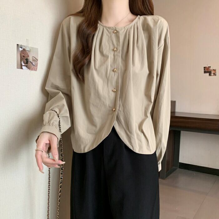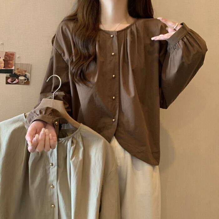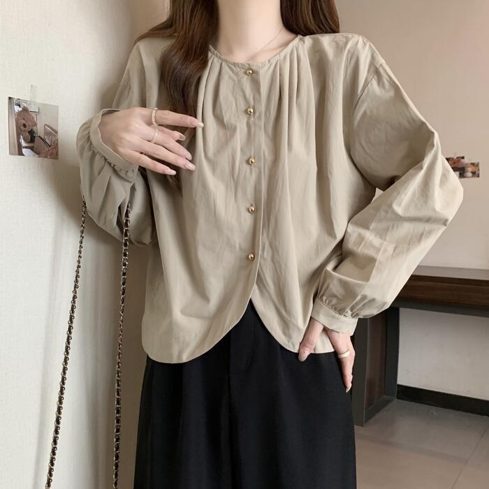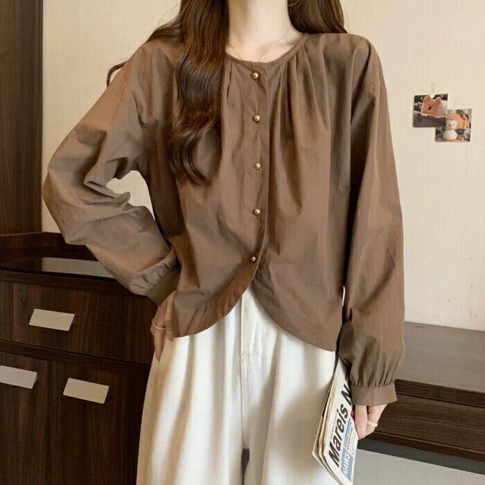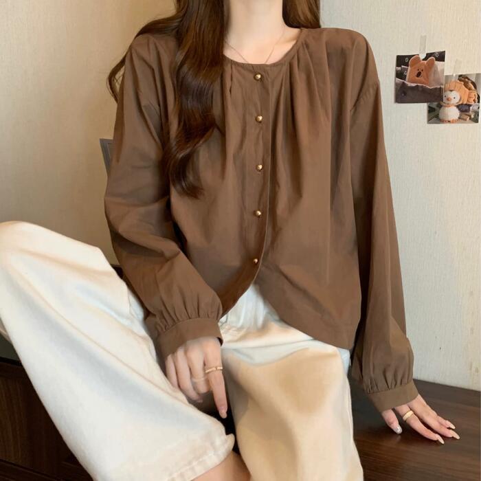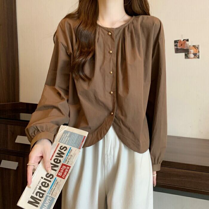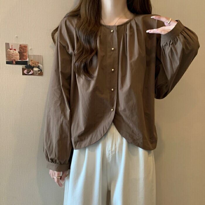 全2色 大きいサイズ トップス シャツ ブラウス カーディガン 羽織り レディース エレガント 大人 可愛い きれいめ カジュアル フェミニン 長袖 ナチュラル ラウンドヘム 体型カバー ショート丈 ベージュ ブラウン 春 秋 冬 20代 30代 40代 50代