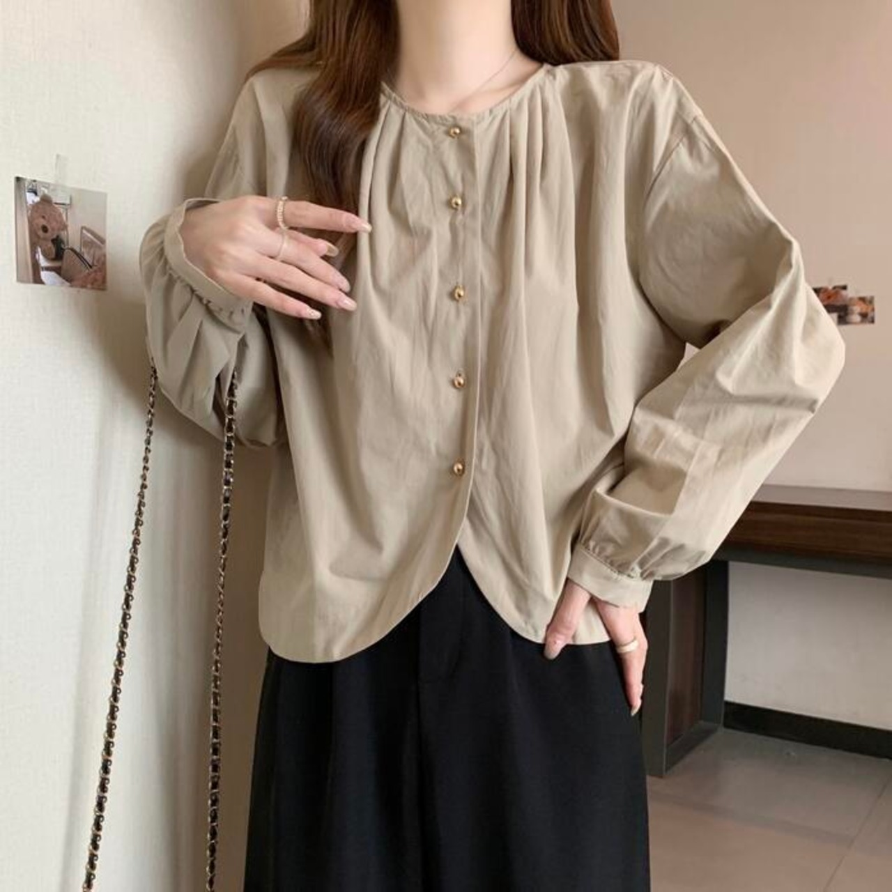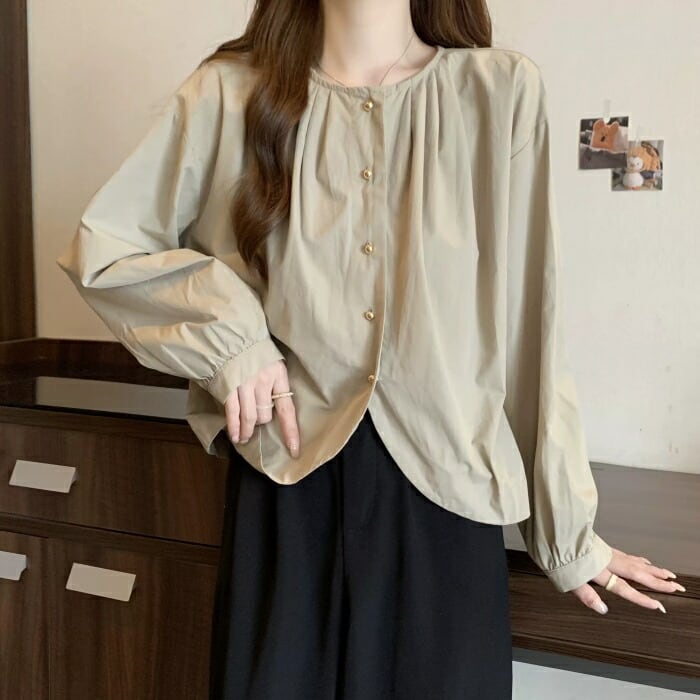 裾のラウンドデザインがコーデのポイントになるブラウス。
