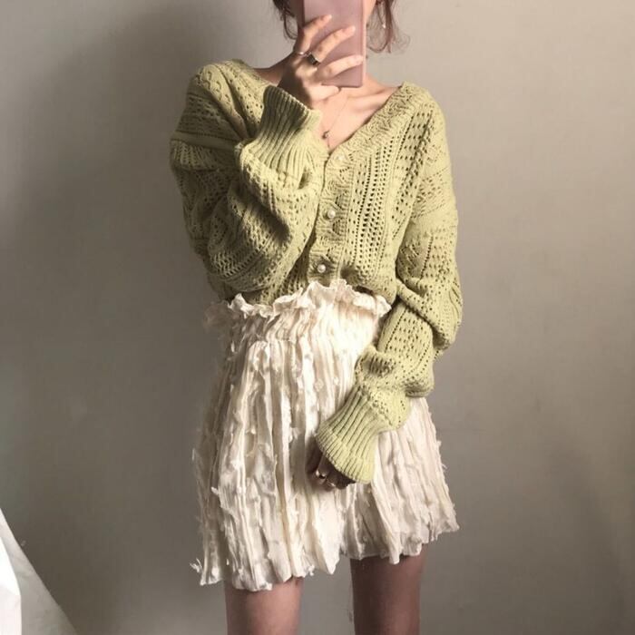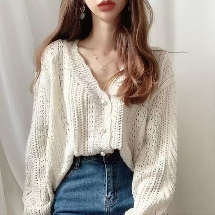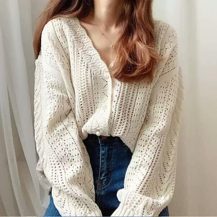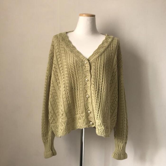 全2色 体型カバー シンプル トップス カーディガン ニット 透かし編み 羽織り ジャケット クロシェ レディース エレガント 大人 可愛い きれいめ カジュアル フェミニン 長袖 ナチュラル Vネック 透け感 グリーン 緑 ベージュ 春 秋 冬 20代 30代 40代 50代