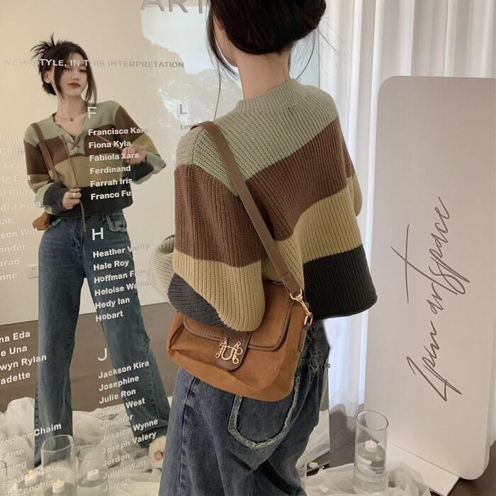 シックなカラー配色のマルチボーダーが大人っぽいニットトップス。