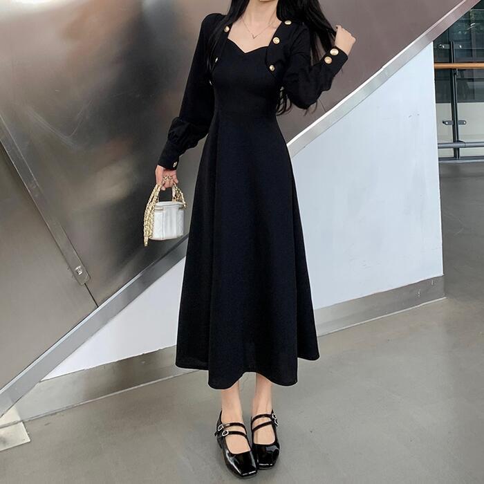 ハートネックデザインがエレガントな雰囲気のワンピース。