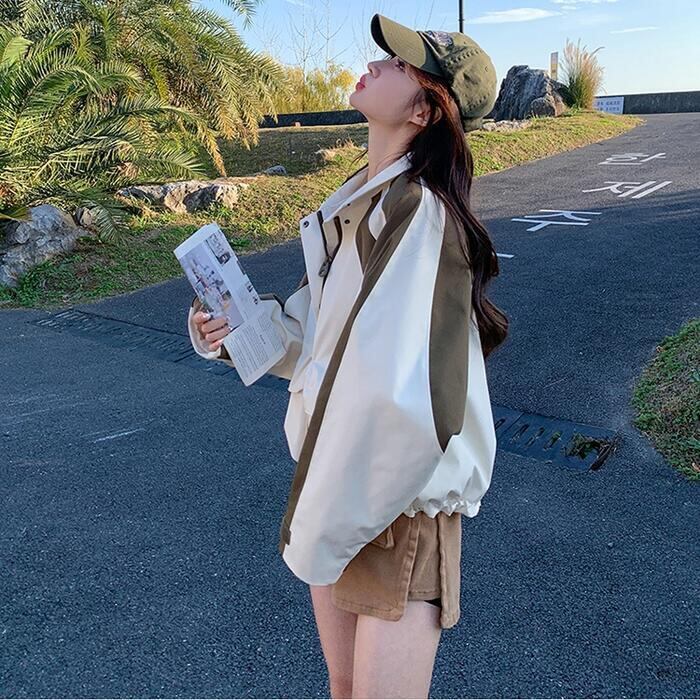 大きいサイズ 体型カバー アウター ジャケット コート ブルゾン マウンテンパーカー ウインドブレーカー 羽織り レディース 大人 可愛い きれいめ カジュアル スポーティ フェミニン 長袖 アウトドア 配色 切り替え バイカラー ベージュ 春 秋 冬 20代 30代 40代 50代