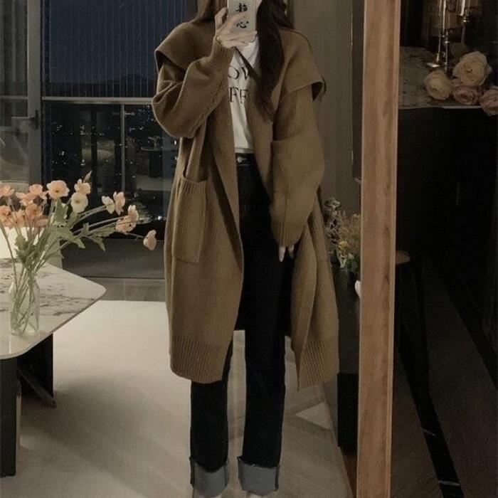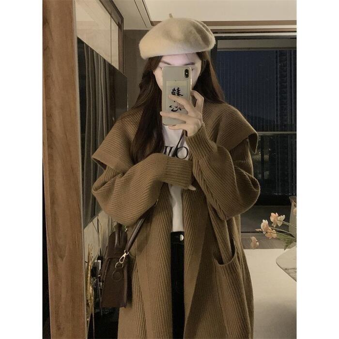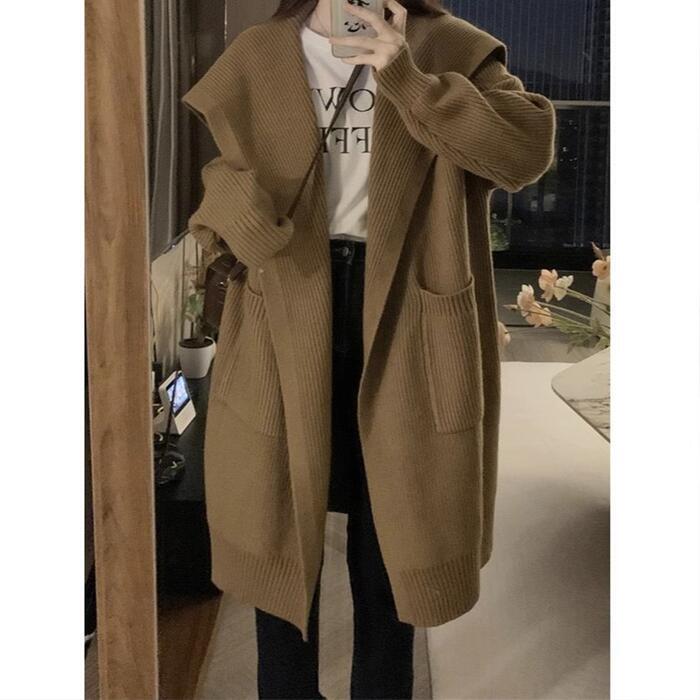 アウター ジャケット コート ニット カーディガン レディース 大人 可愛い エレガント きれいめ カジュアル フェミニン 長袖 シンプル 羽織り ロング丈 ゆったり 体型カバー 大きいサイズ ブラウン 春 秋 冬 20代 30代 40代 50代