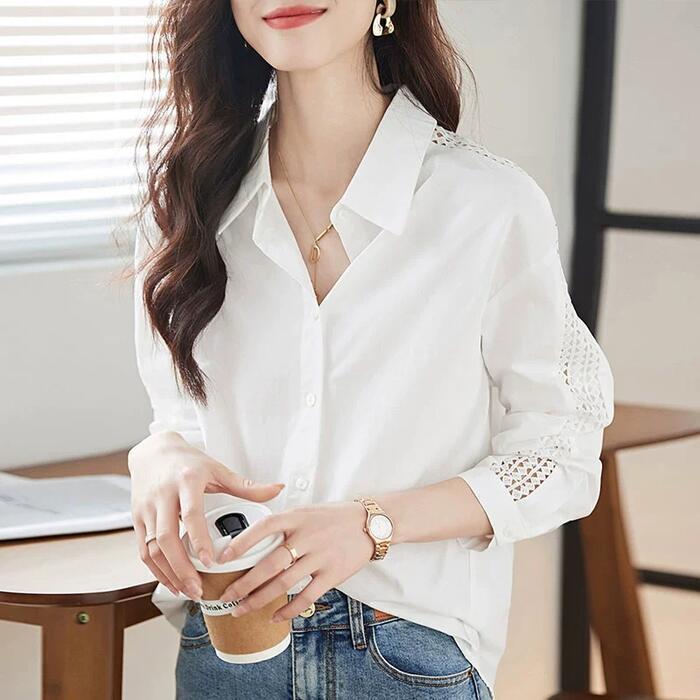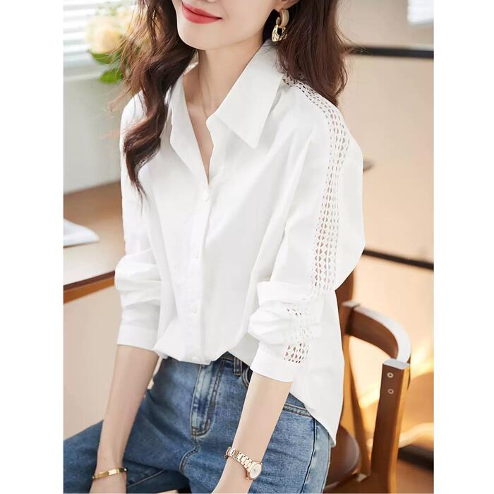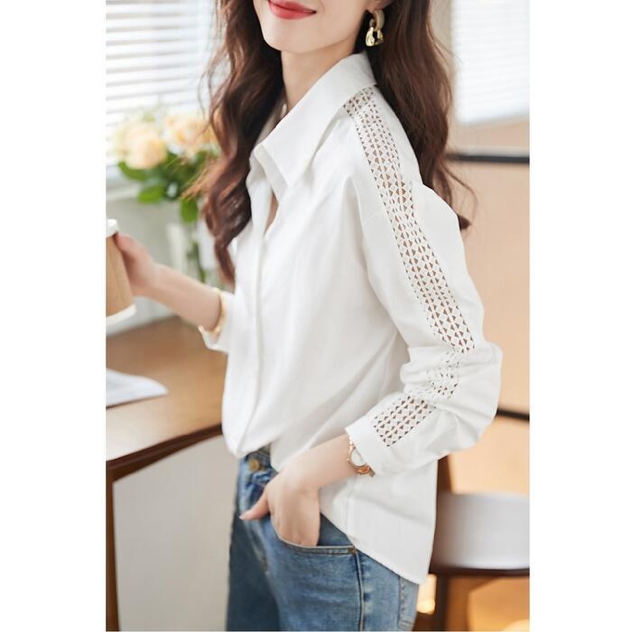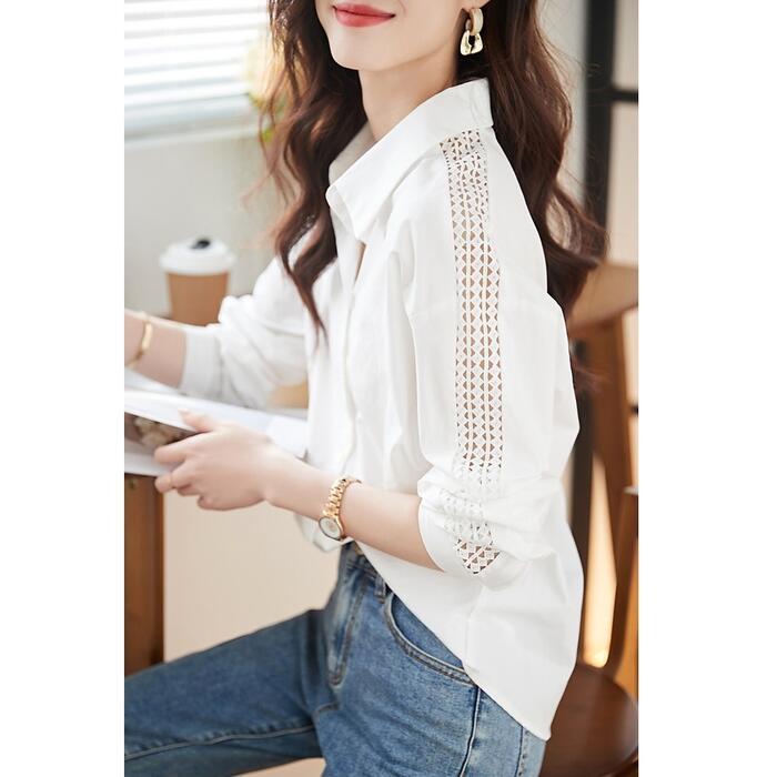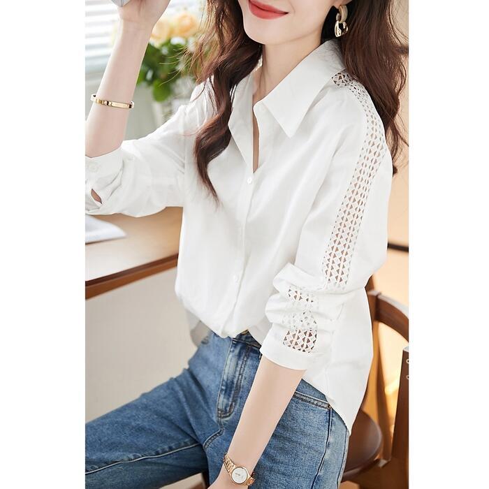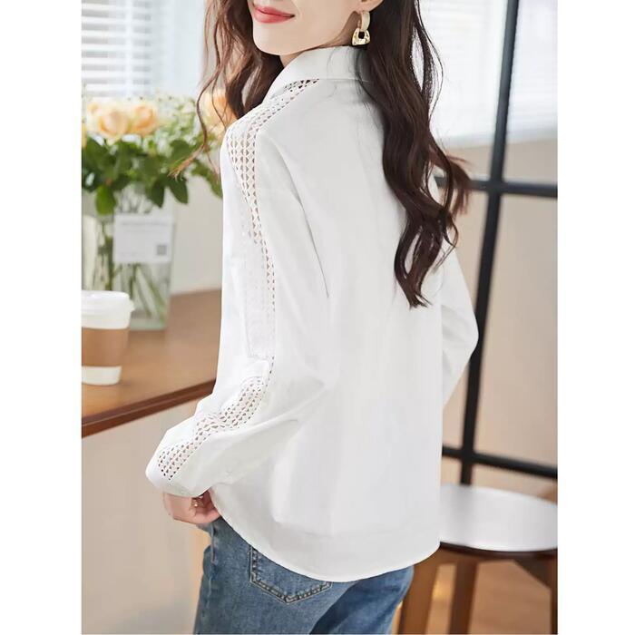 大きいサイズ トップス ブラウス シャツ レース レディース エレガント 大人 可愛い きれいめ カジュアル フェミニン 長袖 ナチュラル 透け感 上品 通勤 オフィス 肌見せ 体型カバー シンプル ホワイト 白 春 秋 冬 20代 30代 40代 50代
