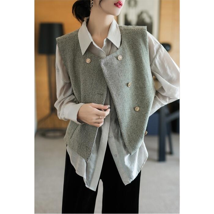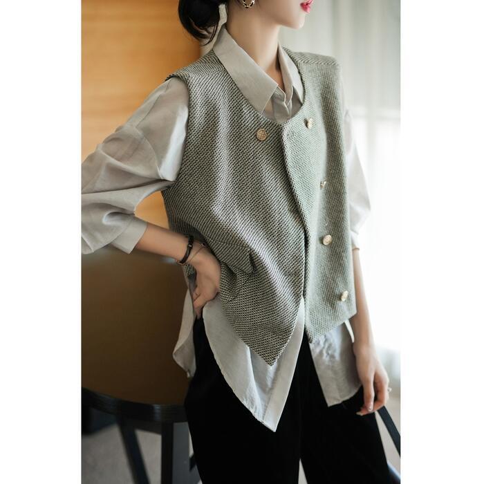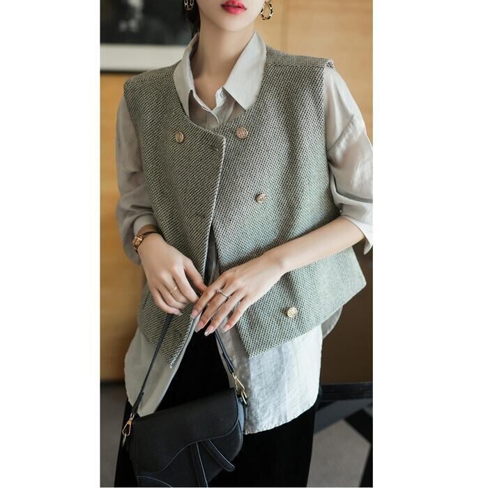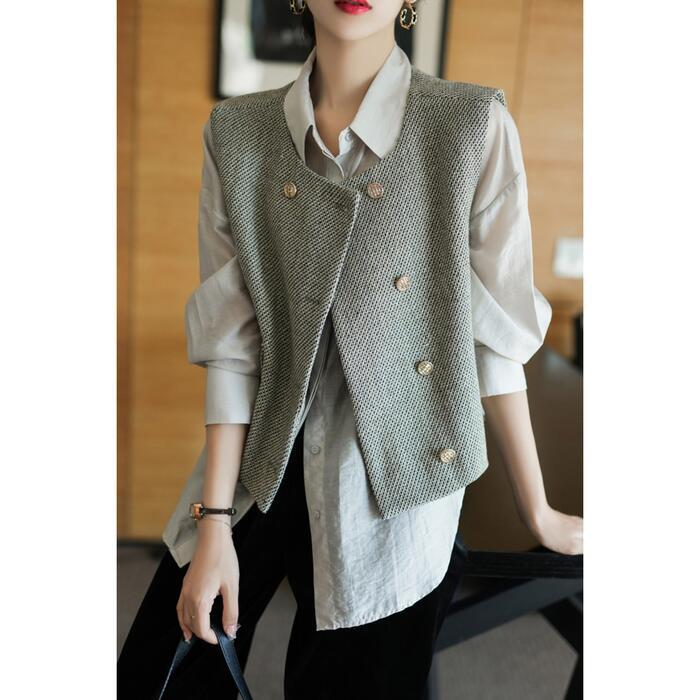 大きいサイズ ベスト ジレ トップス カーディガン 羽織り ジャケット ツイード レディース エレガント 大人 可愛い きれいめ カジュアル フェミニン ノースリーブ シンプル レイヤード 体型カバー 通勤 オフィス グレー 春 秋 冬 20代 30代 40代 50代