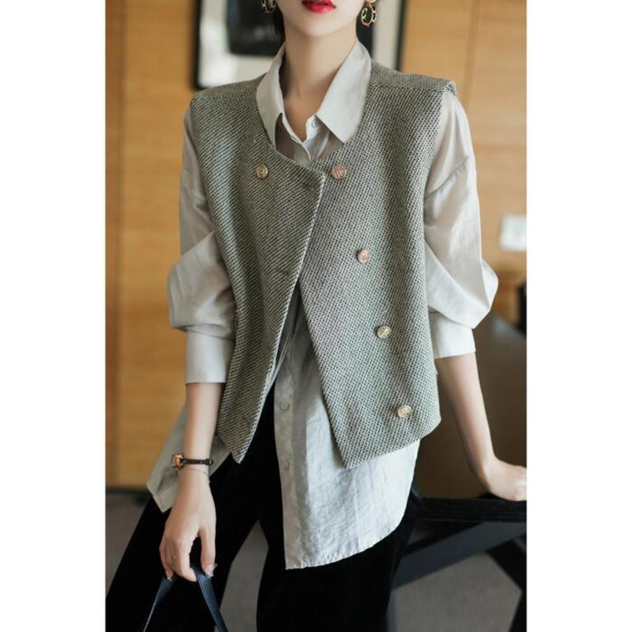 羽織るだけでスタイリッシュに決まるツイード調ベスト。