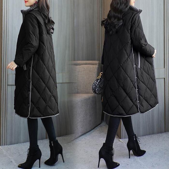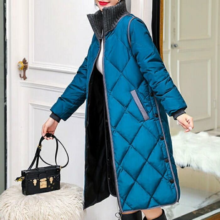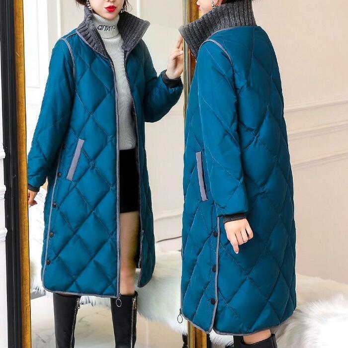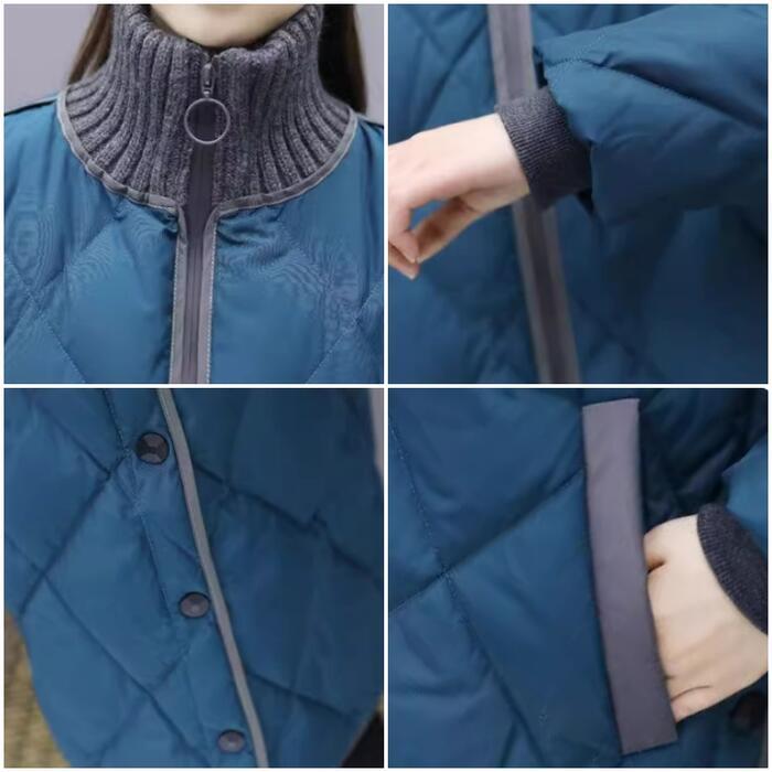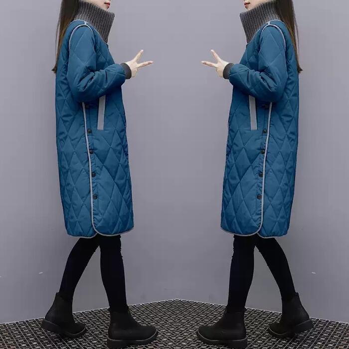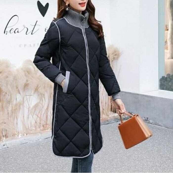 全2色 大きいサイズ 体型カバー 暖かい 中綿 配色 アウター ジャケット コート キルティング 羽織り タートルネック ステンカラーコート レディース 大人 可愛い エレガント きれいめ カジュアル フェミニン Aライン サイドボタン シンプル ブルー 青 ブラック 黒 春 秋 冬 20代 30代 40代 50代