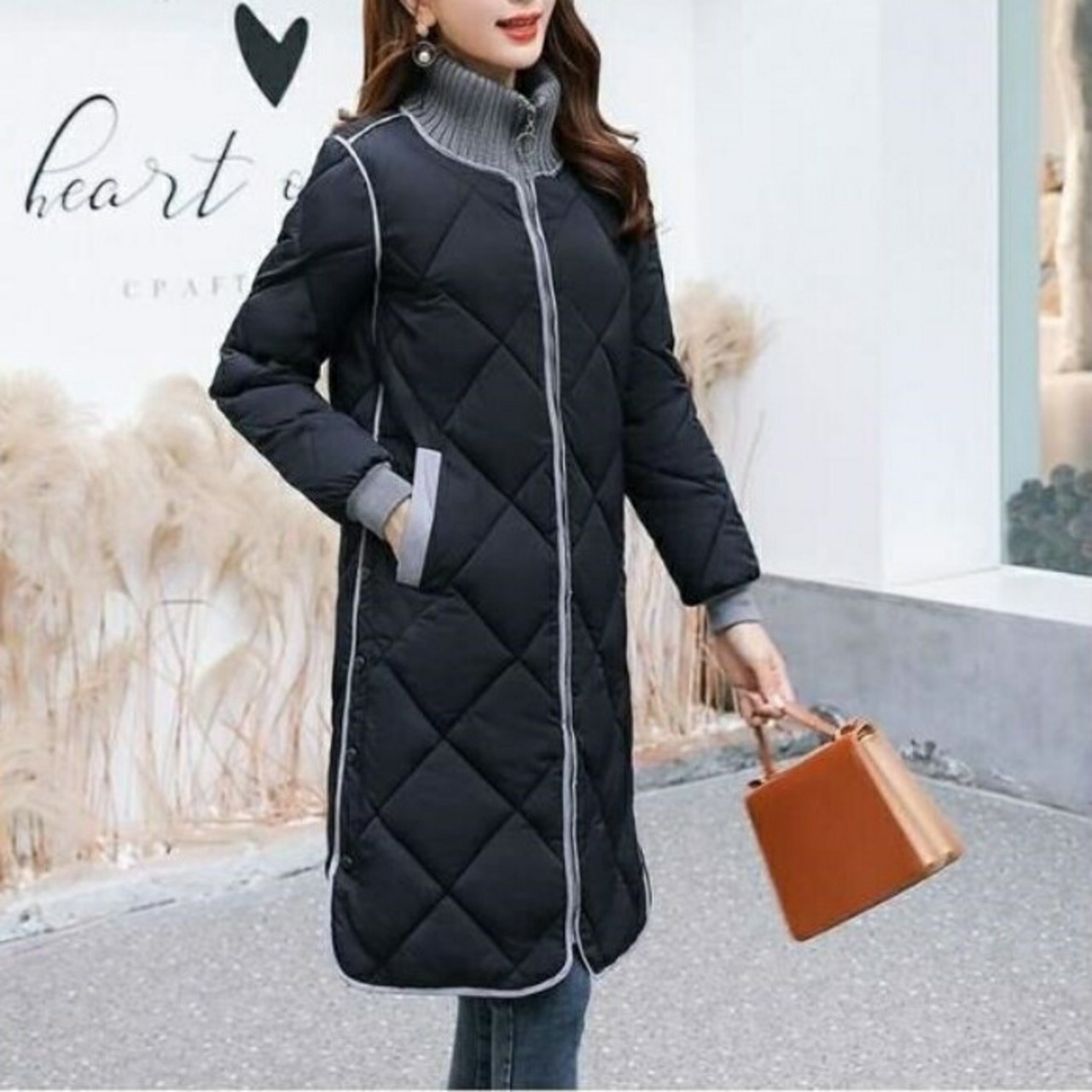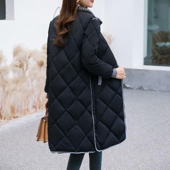サイドボタンがポイントのキルティングコート。