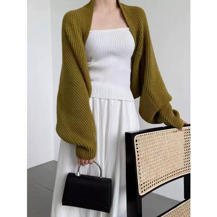 ショート&ワイドのシルエットが新鮮なドルマンカーディガン。