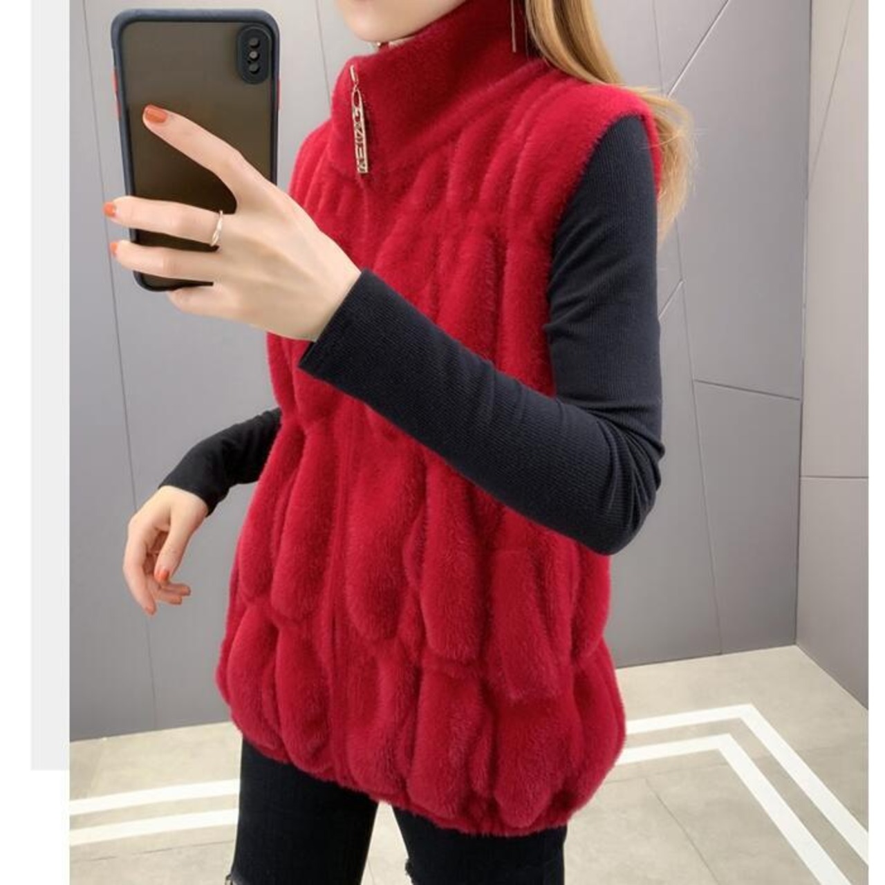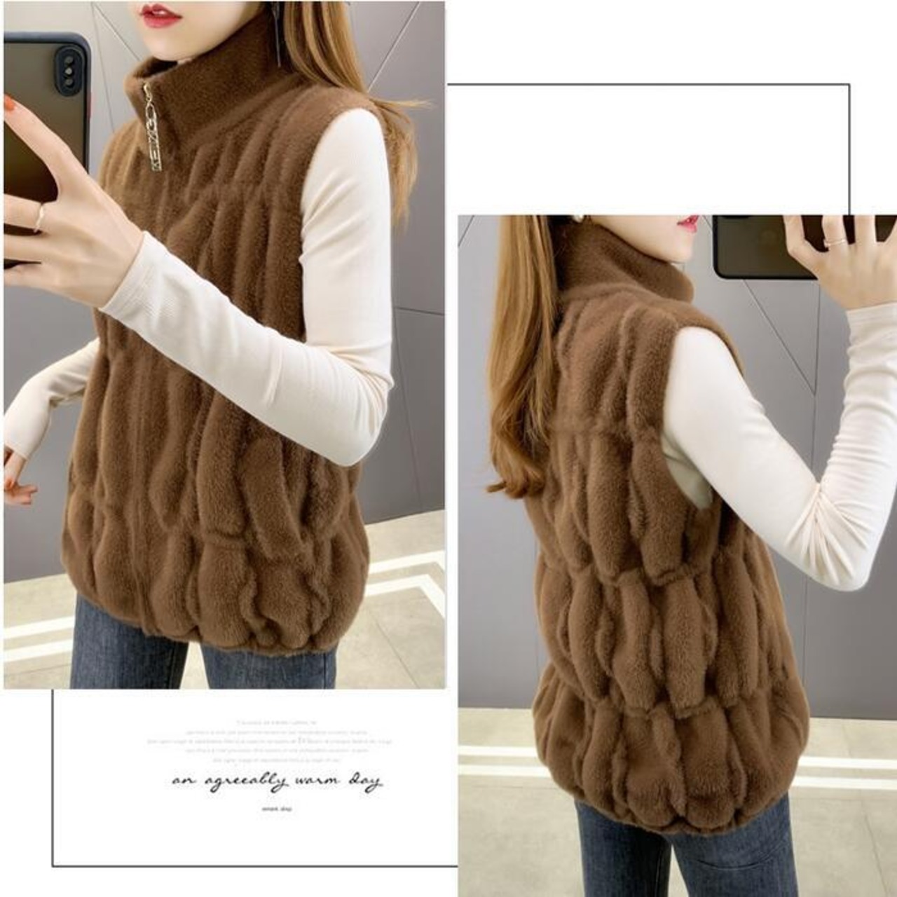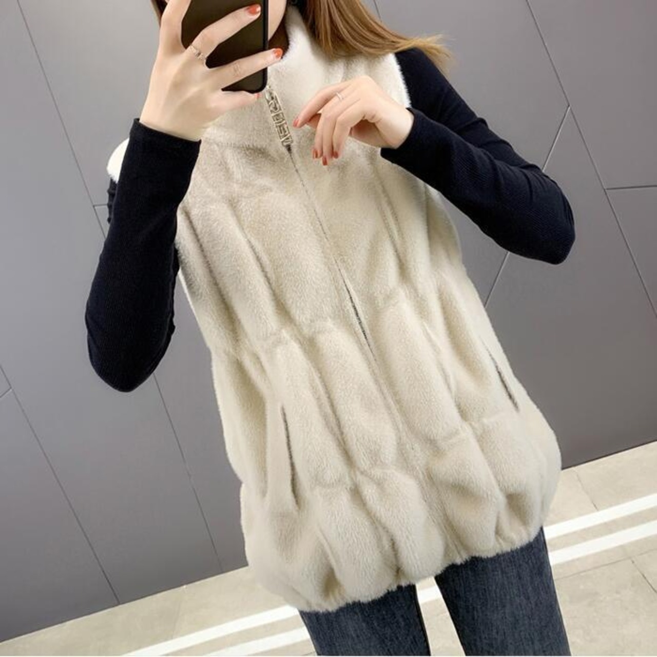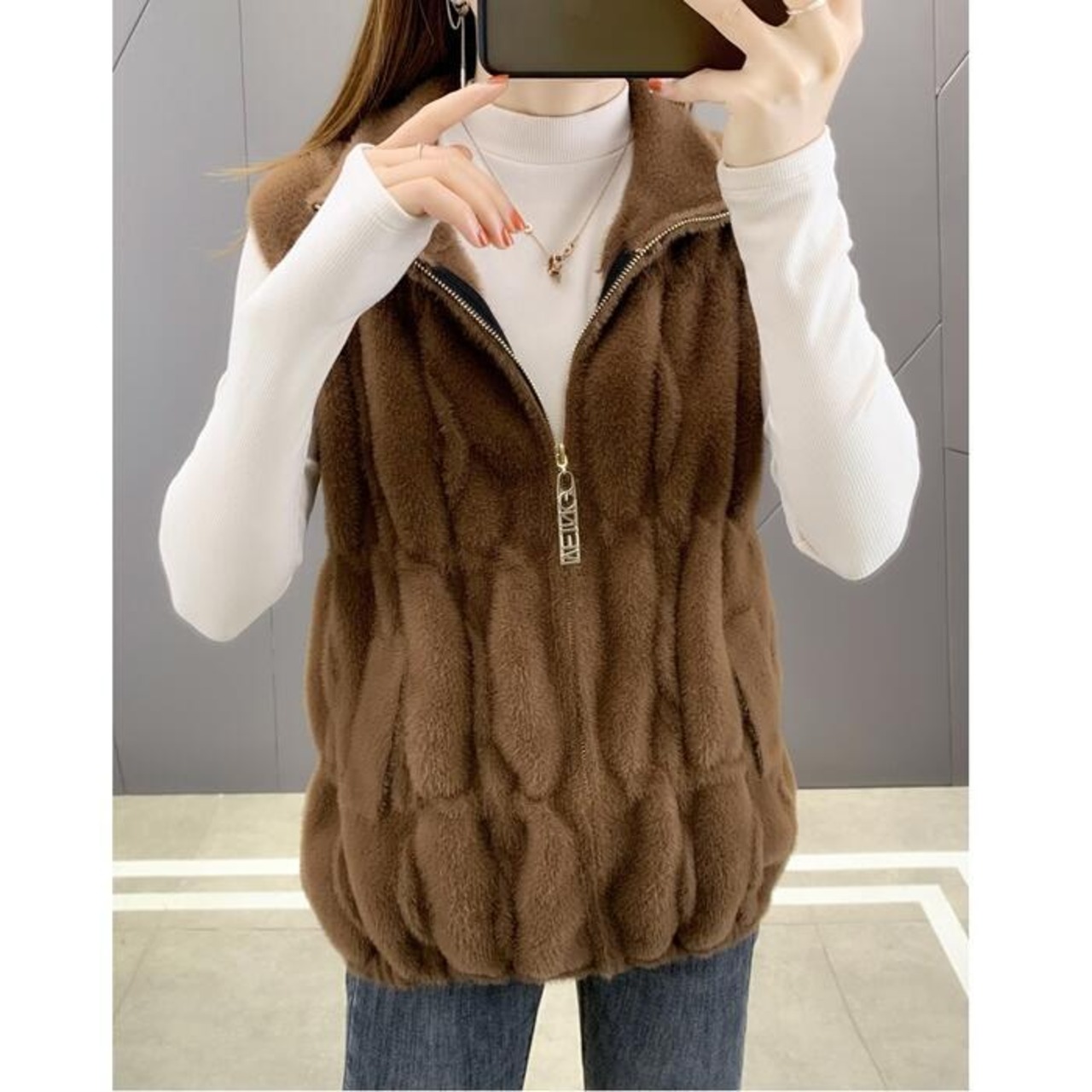 滑らかなファー素材が心地良いジップアップベスト。