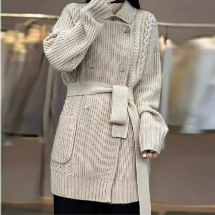 大きいサイズ アウター カーディガン ニット コート ジャケット 羽織り 襟付き レディース エレガント 大人 可愛い きれいめ カジュアル フェミニン 長袖 ウエストベルト 体型カバー ナチュラル ベージュ 春 秋 冬 20代 30代 40代 50代