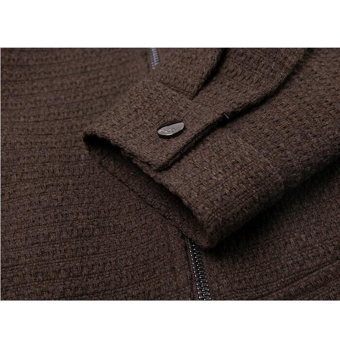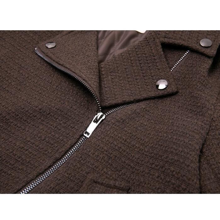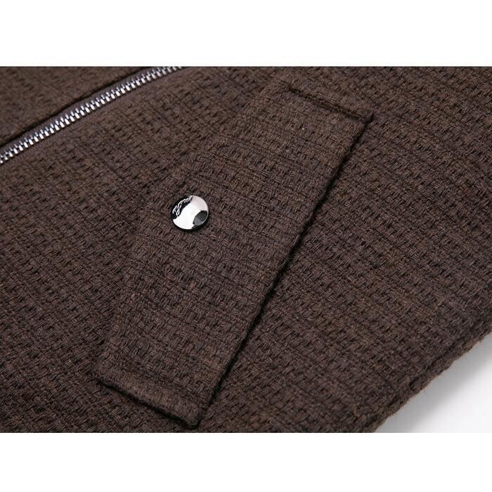 カーディガン感覚で羽織れるツイード調のライダースジャケット。