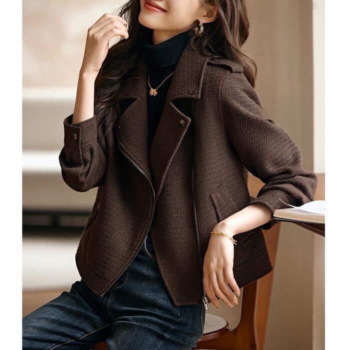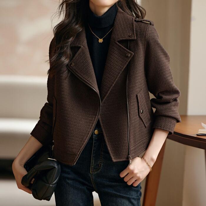 大きいサイズ アウター ジャケット コート ブルゾン ライダース ツイード 羽織り ジャンパー レディース 大人 可愛い エレガント きれいめ カジュアル マニッシュ かっこいい ショート丈 体型カバー シンプル ブラウン 春 秋 冬 20代 30代 40代 50代
