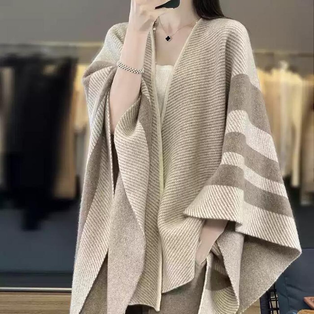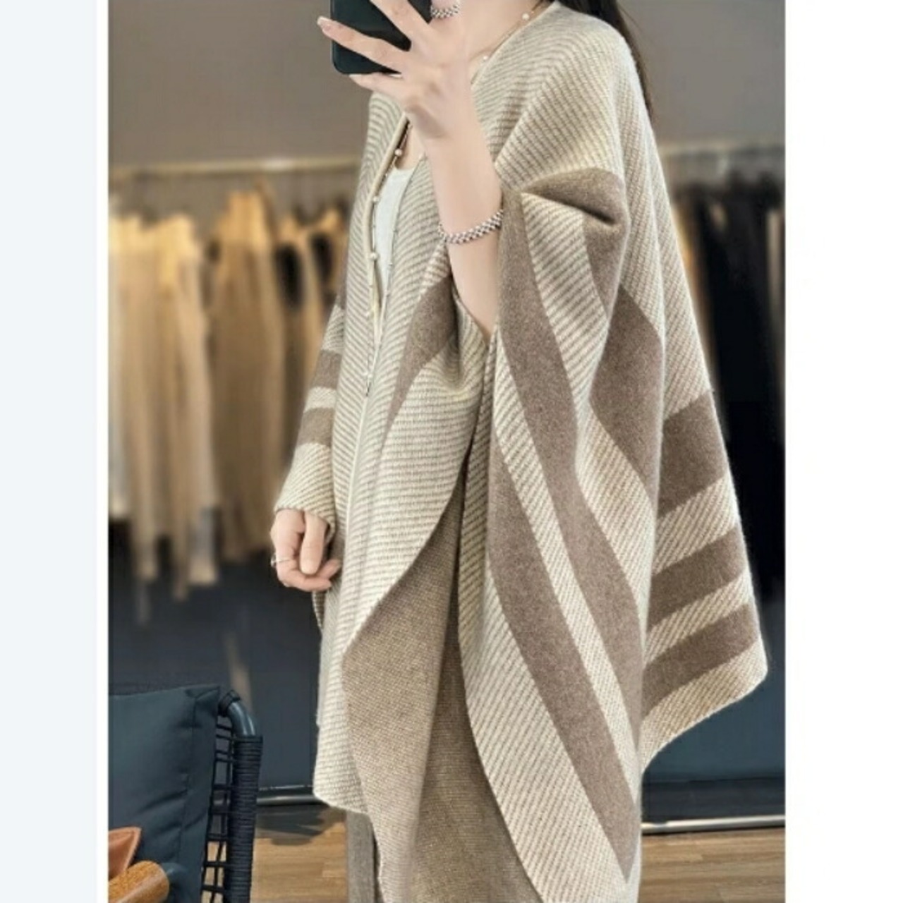 全2色 大きいサイズ アウター ストール ショール カーディガン ジャケット 羽織り ウール レディース エレガント 大人 可愛い きれいめ カジュアル フェミニン 体型カバー ナチュラル マフラー ひざ掛け ベージュ 春 秋 冬 20代 30代 40代 50代