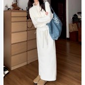 全2色 大きいサイズ シンプル 楽ちん セットアップ レディース スウェット ハーフジップ スカート ハイネック 長袖 カットソー 2点セット エレガント カジュアル きれいめ フェミニン ロングスカート 大人 可愛い おしゃれ リラックス ベージュ グレー 春 秋 冬 20代 30代 40代 50代