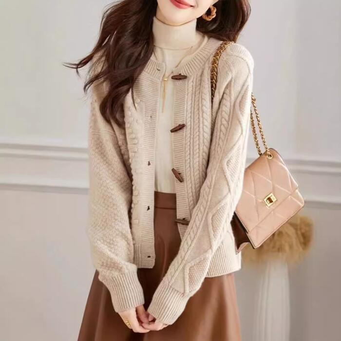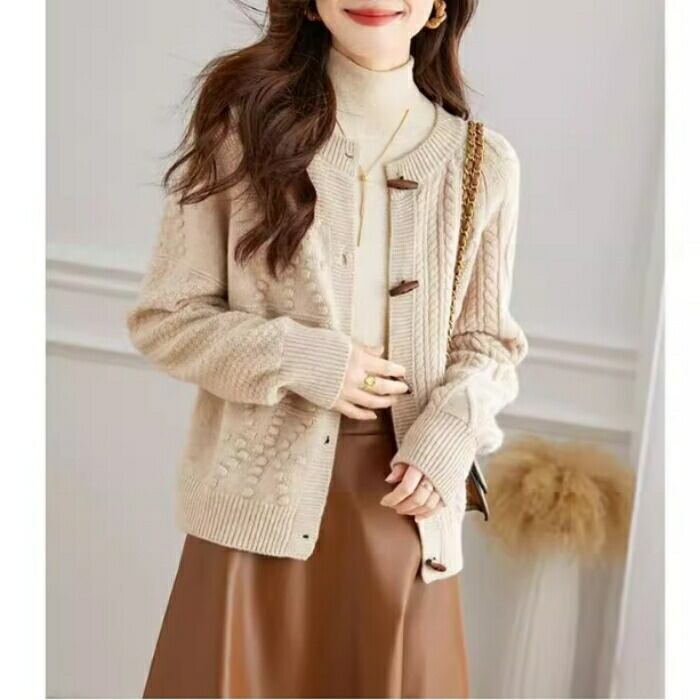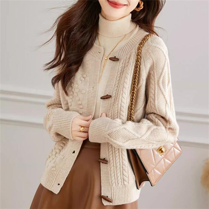 トグルボタンが可愛いニットカーディガン。