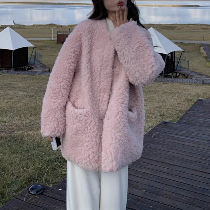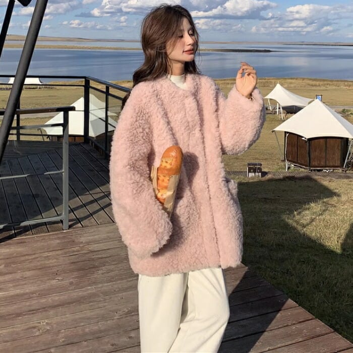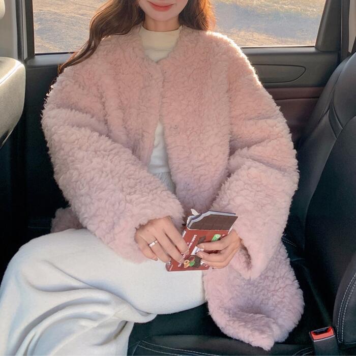 アウター コート ジャケット ボア 羽織り ブルゾン カーディガン レディース エレガント 大人 可愛い きれいめ カジュアル フェミニン もこもこ ゆったり シンプル 体型カバー 大きいサイズ ピンク 春 秋 冬 20代 30代 40代 50代