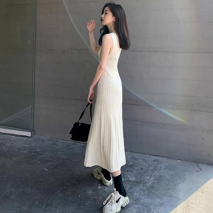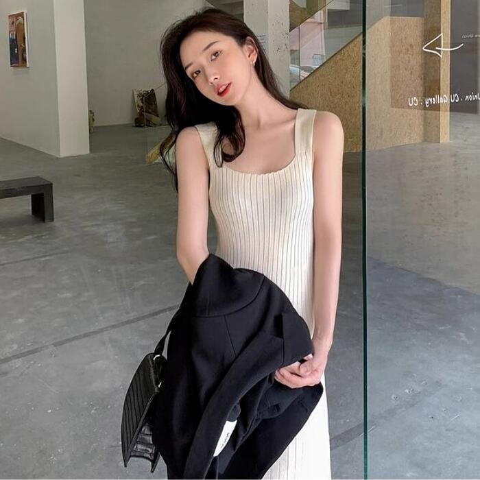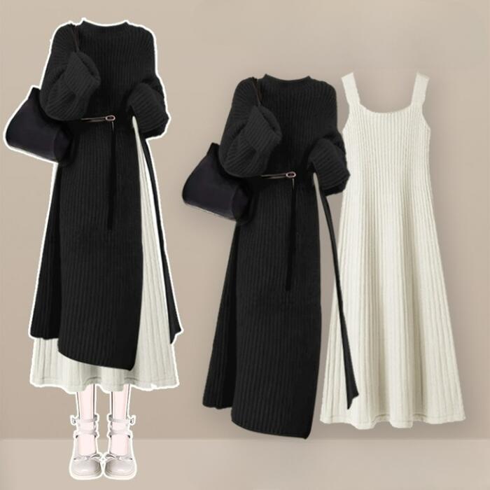 ロングスリットワンピース&ノースリーブワンピースのレイヤードセット。