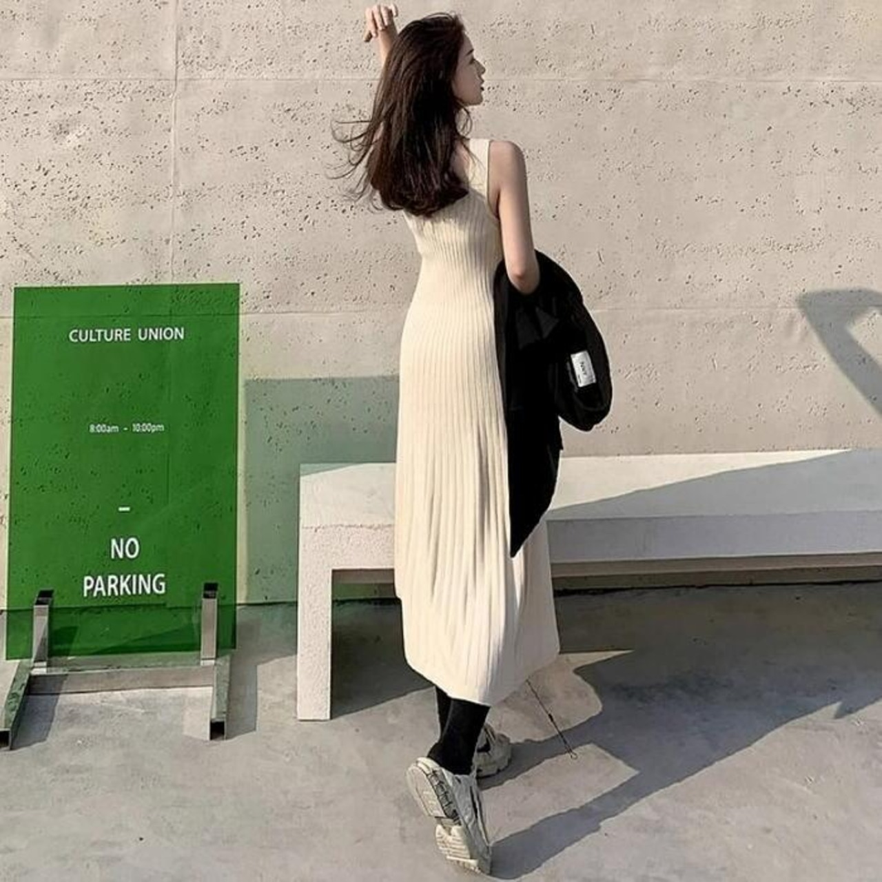 ノースリーブワンピースは一枚でも様になり、オールシーズン着回せるアイテムです。