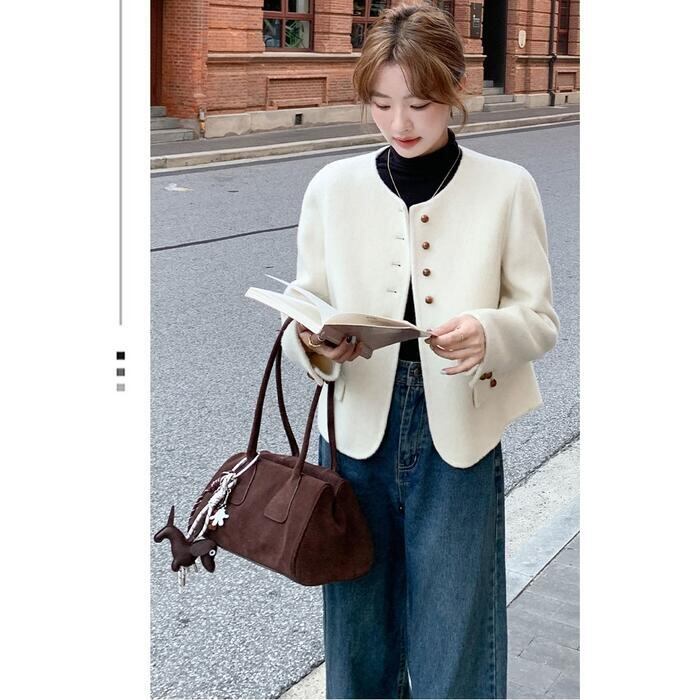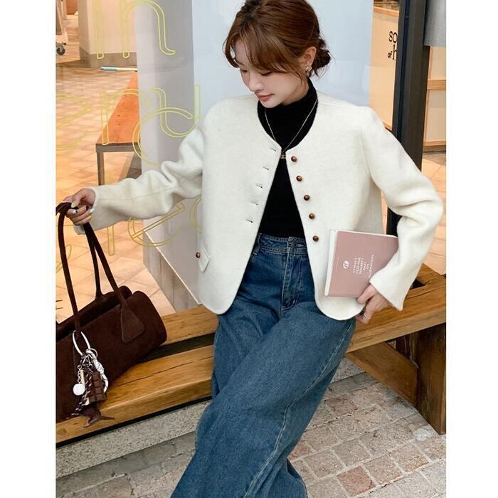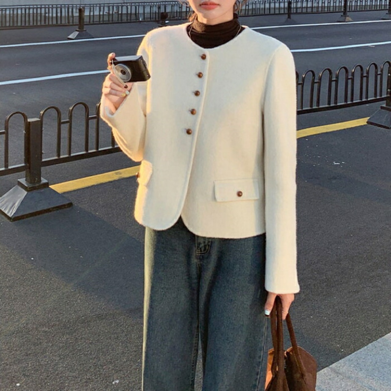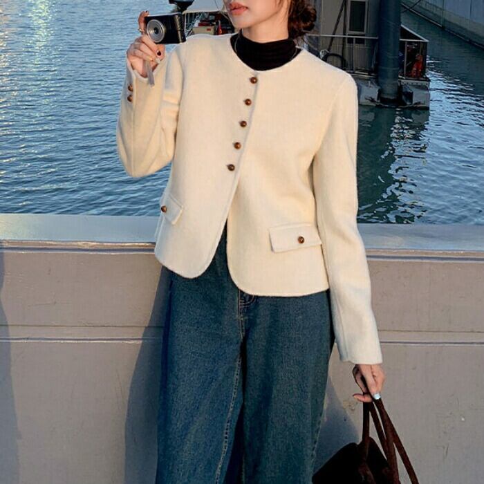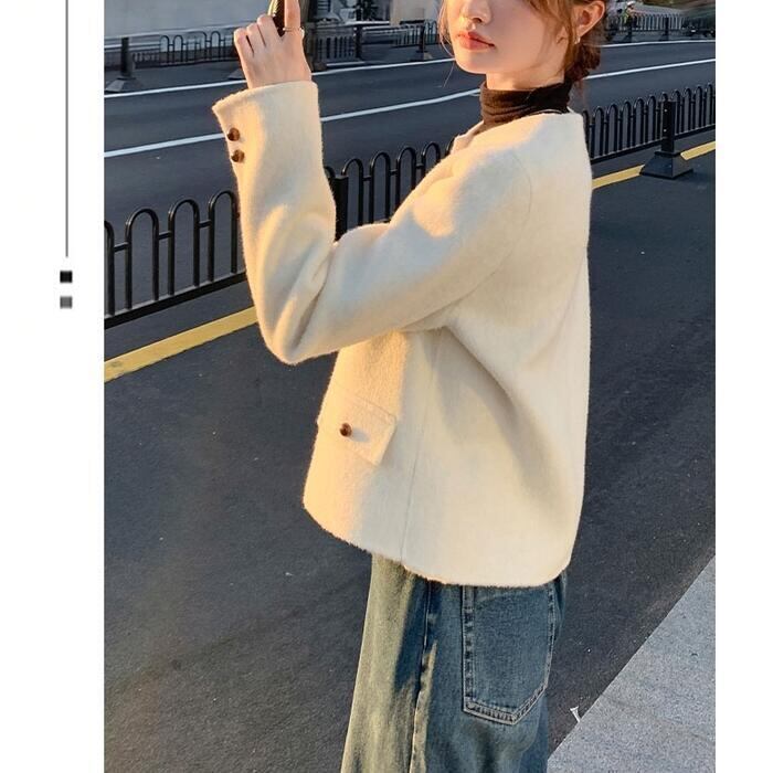大きいサイズ アウター コート ジャケット カシミヤ ノーカラー レディース 大人 可愛い きれいめ カジュアル エレガント フェミニン 長袖 ミディ丈 おしゃれ シンプル 上品 通勤 体型カバー ホワイト 白 春 秋 冬 20代 30代 40代 50代
