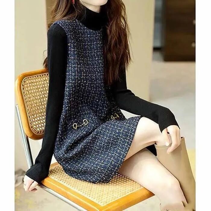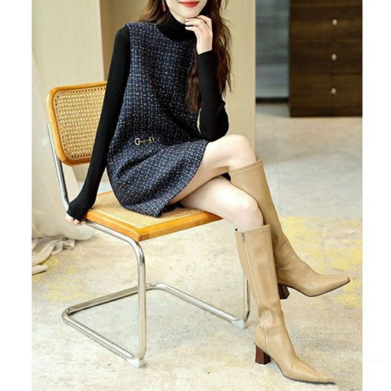 大きいサイズ 体型カバー ワンピース ワンピ ドレス ツイード ミニワンピ ジャンパースカート レディース エレガント きれいめ カジュアル 大人 可愛い フェミニン ショート丈 シンプル ノースリーブ レイヤード ネイビー 春 秋 冬 20代 30代 40代 50代