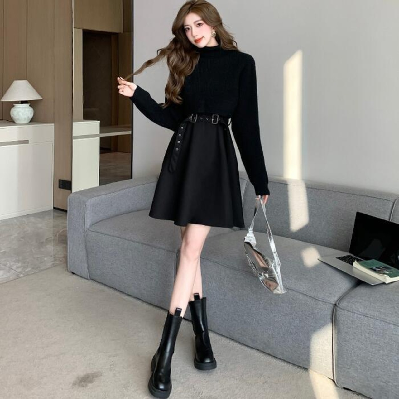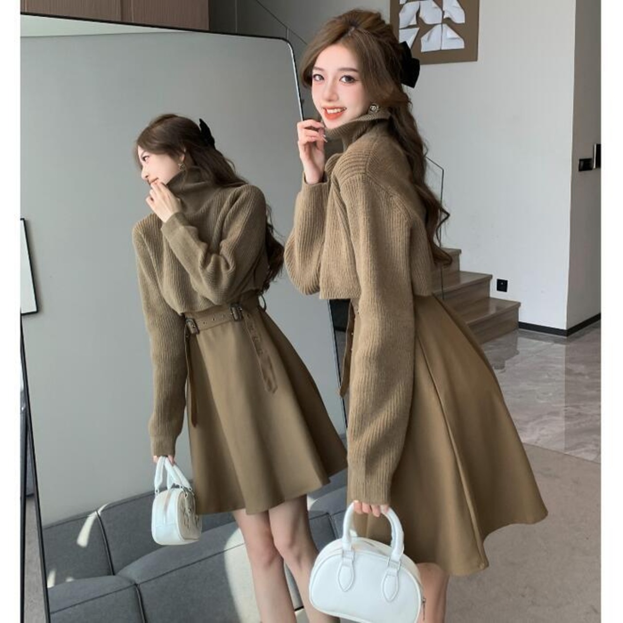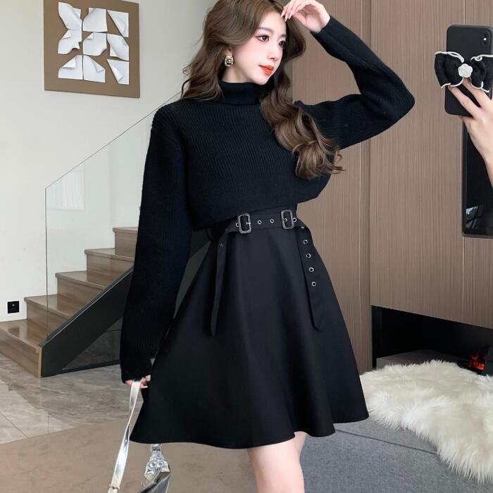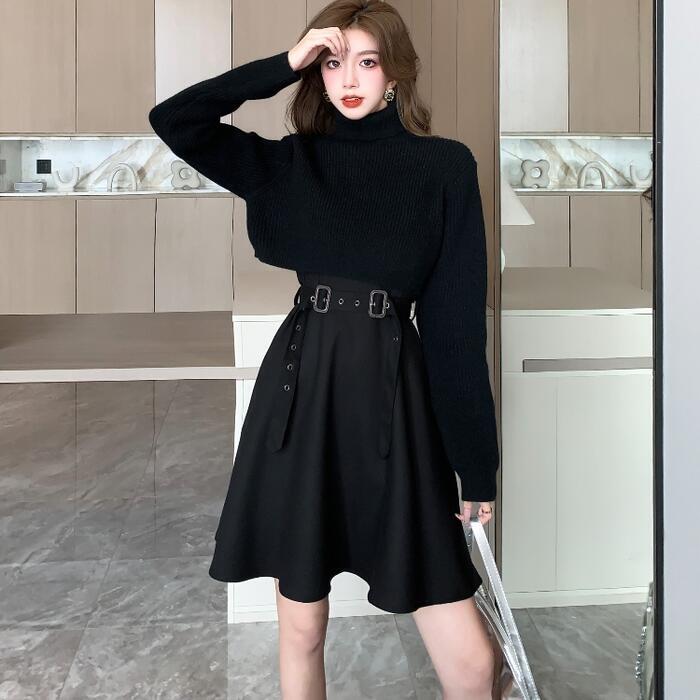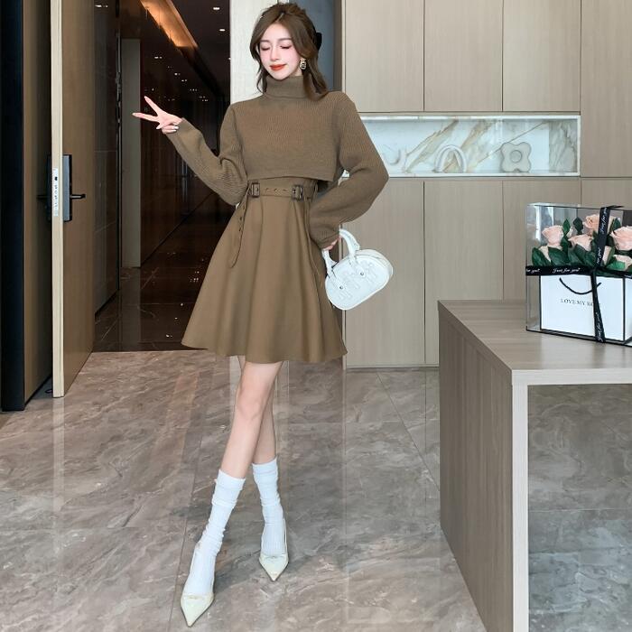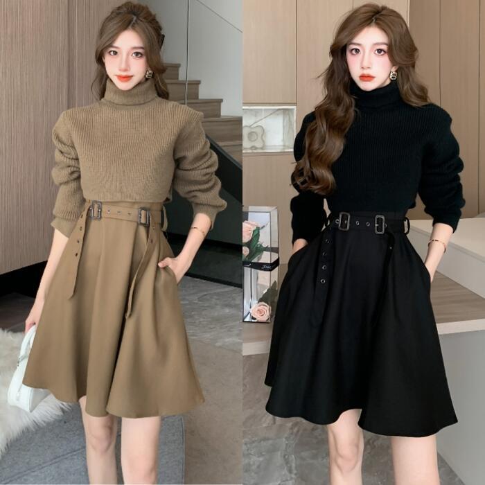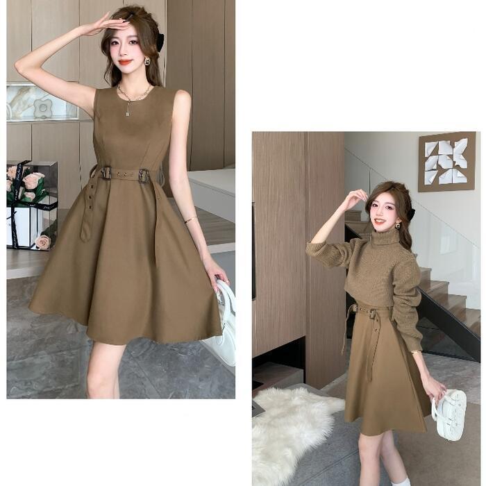 ノースリーブワンピース&タートルネックトップスのセット。
